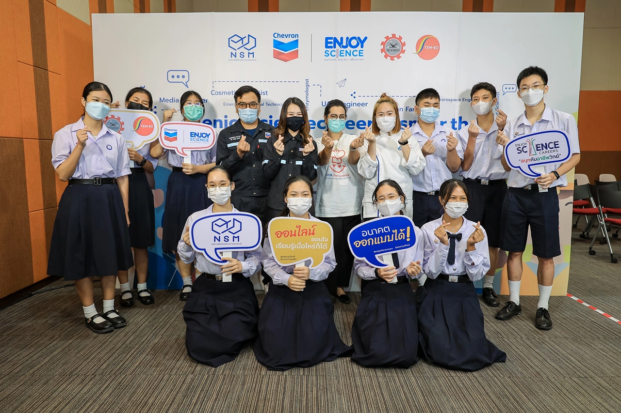 องค์การพิพิธภัณฑ์วิทยาศาสตร์แห่งชาติ (อพวช.) กระทรวงการอุดมศึกษา วิทยาศาสตร์ วิจัยและนวัตกรรม ร่วมกับ บริษัท เชฟรอนประเทศไทยสำรวจและผลิต จำกัด และศูนย์ภูมิภาคว่าด้วยสะเต็มศึกษาขององค์การรัฐมนตรีศึกษาแห่งเอเชียตะวันออกเฉียงใต้ (SEAMEO STEM-ED) สานต่อความสำเร็จโครงการ “Enjoy Science Careers: สนุกกับอาชีพวิทย์” เตรียมพัฒนาแพลตฟอร์มออนไลน์ แนะนำข้อมูลด้านอาชีพสะเต็มกว่า 50 อาชีพ เพื่อสร้างแรงบันดาลใจให้กับเยาวชน ในการเรียนรู้และค้นพบตนเองได้ทุกที่ทุกเวลาไม่มีข้อจำกัด พบกัน ม.ค. 66 นี้แน่นอน