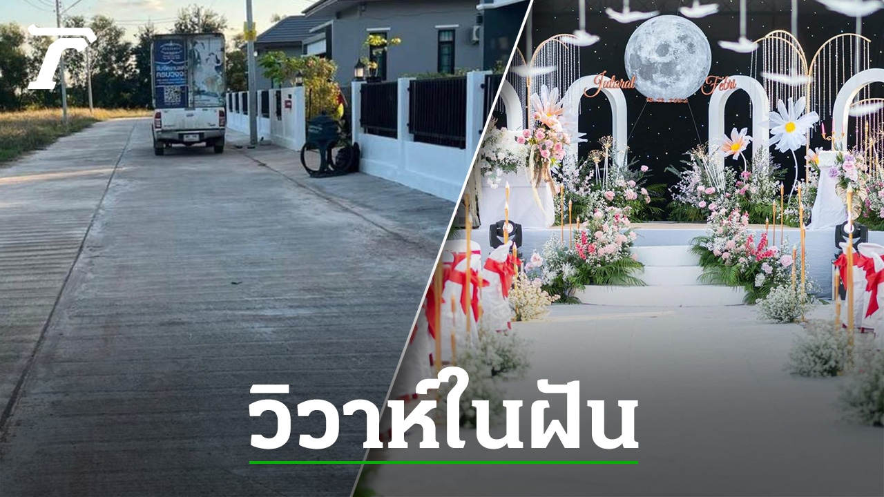 บ่าวสาวปลื้มใจ ออร์แกไนซ์จัดงานแต่งสุดอลังการ เปลี่ยน "ถนนหน้าหมู่บ้าน" ให้กลายเป็นอุโมงค์เหมือนที่เคยฝันไว้ แถมพระจันทร์ดวงใหญ่เป็นพยานรัก