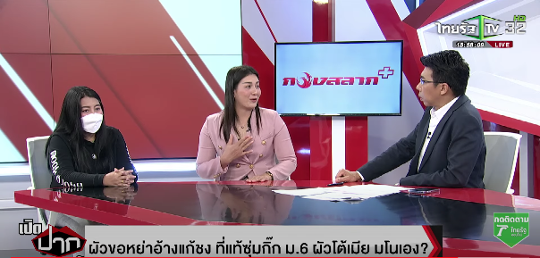 เมื่อเวลา 15.30 น. วันที่ 11 มกราคม 2566 ในรายการ "เปิดปากกับภาคภูมิ" ทางไทยรัฐทีวีช่อง 32 ดำเนินรายการโดย นายภาคภูมิ พันธุ์สถิตย์ ได้พูดคุยกับคุณแมว และทนายเกิดผล แก้วเกิด มีปมเมียเรียกร้องความเป็นธรรม หลังผัวขอหย่าอ้างแก้ชง สุดท้ายพบผัวซุกกิ๊กเด็ก ม.6