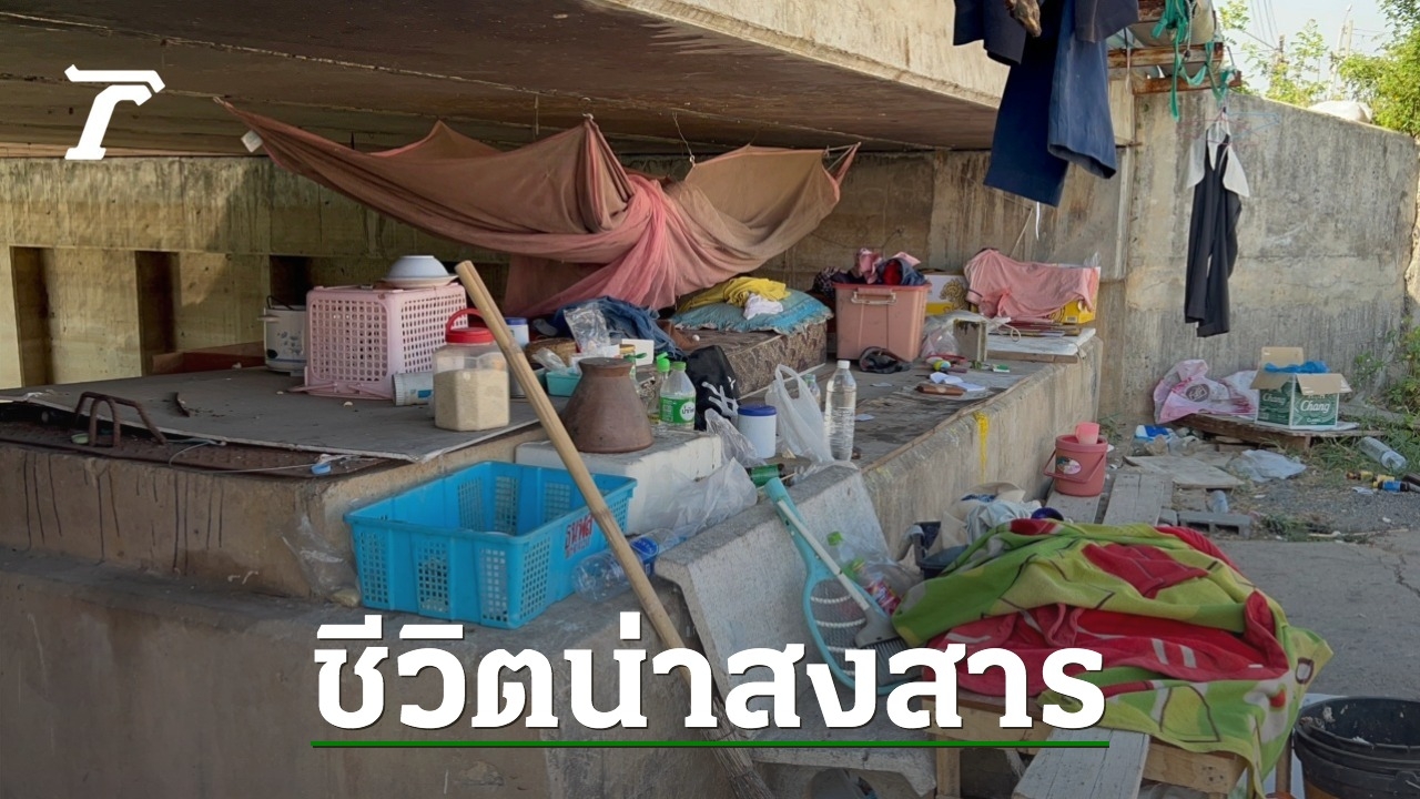 ต่อมาผู้สื่อข่าวได้ลงพื้นที่ ตรวจสอบสภาพที่พักของผู้ป่วยรายดังกล่าว บริเวณใต้สะพานหลังหมู่บ้านพระปิ่น 7 พบว่า มีการสร้างเพิงพักขนาดเล็ก ใช้ไม้มาปูเป็นพื้น มีที่นอนและมุ้ง พร้อมกับข้าวของเครื่องใช้จำนวนหนึ่ง เมื่อสอบถามเจ้าหน้าที่รักษาความปลอดภัยของหมู่บ้านพระปิ่น 7 เผยว่า ลุงคนดังกล่าว อาศัยอยู่ที่นี่มานานแล้ว เป็นชาวจังหวัดศรีสะเกษ อายุน่าจะประมาณ 70 ปี เมื่อก่อน ประกอบอาชีพเป็นคนงานก่อสร้าง แล้วไม่สบายจนต้องเจาะคอมา ไม่แน่ใจว่าป่วยเป็นอะไร ทำให้พูดไม่ได้ ต้องใช้ภาษามือพูดคุยสื่อสาร แต่ฟังรู้เรื่องทุกอย่าง