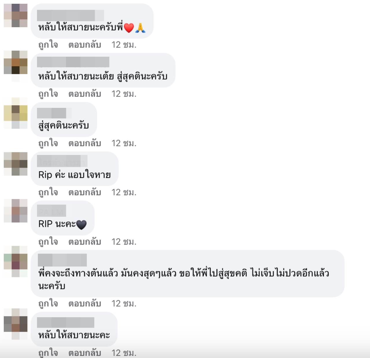ทั้งนี้ ได้มีเพื่อนๆ และแฟนคลับ เข้ามาโพสต์แสดงความเสียใจต่อการจากไปของคุณเต้ยกันจำนวนมาก อาทิ RIP หลับให้สบายนะครับ ขอให้ไปสู่ภพภูมิที่ดี, ขอให้ไปสู่สุคตินะ ตอนนี้เพื่อนๆ มามอบกำลังใจกันเต็มเลย จากนี้ไปขอให้มีความสุข, โชคดี สักวันเราคงได้พบกัน, ขอให้เส้นทางใหม่ที่คุณตัดสินใจเลือกเดิน จงมีแต่ความสุข ความปลอดภัย อย่าได้พบเจอกับความเสียใจ เจ็บปวดอะไรอีกเลยนะ เป็นต้น.