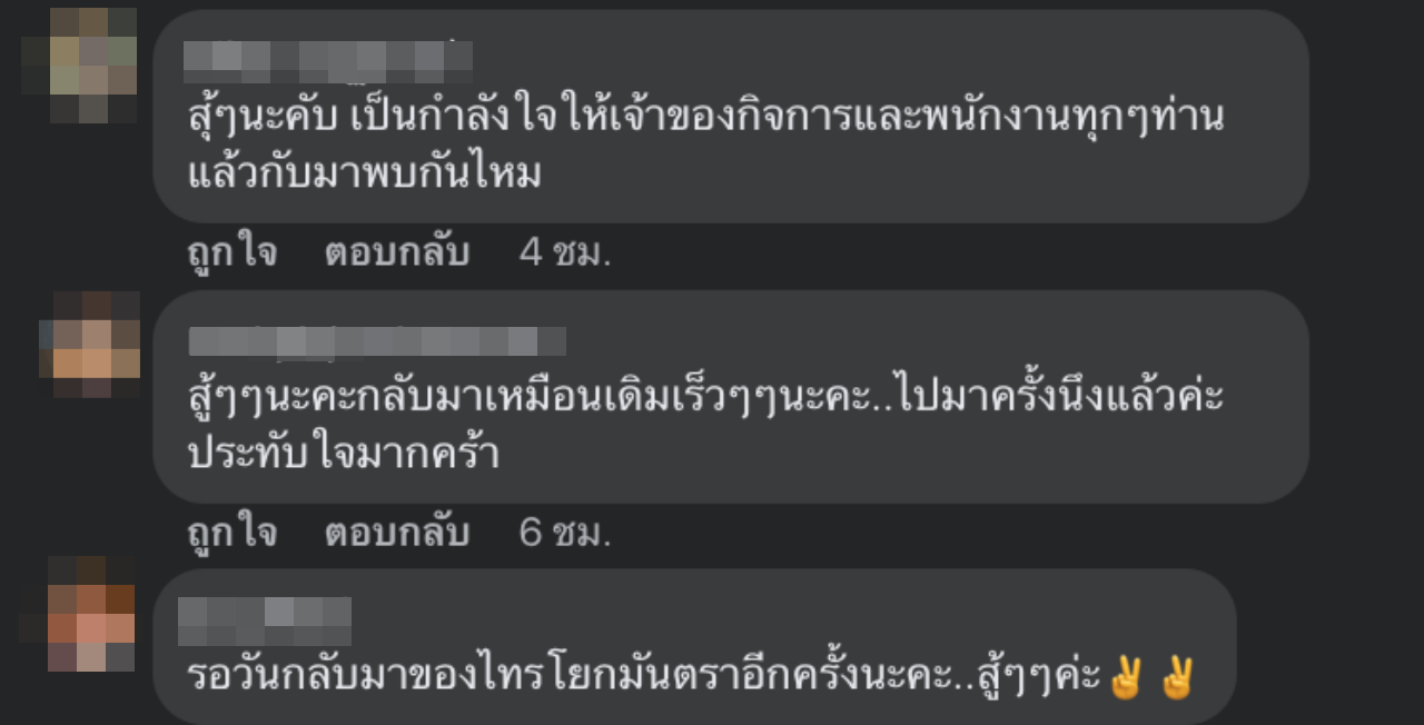 ต่อมา ในเฟซบุ๊กเพจ "Saiyok Mantra Resort : ไทรโยค มันตรา รีสอร์ท" ซึ่งเป็นเฟซบุ๊กของทางรีสอร์ต พบว่ามีนักท่องเที่ยวจำนวนมากที่เคยมาพัก ได้เข้ามาโพสต์ให้กำลังใจทางรีสอร์ต พร้อมกับบอกว่า จะรอการกลับมาของทางรีสอร์ตอีกครั้ง.