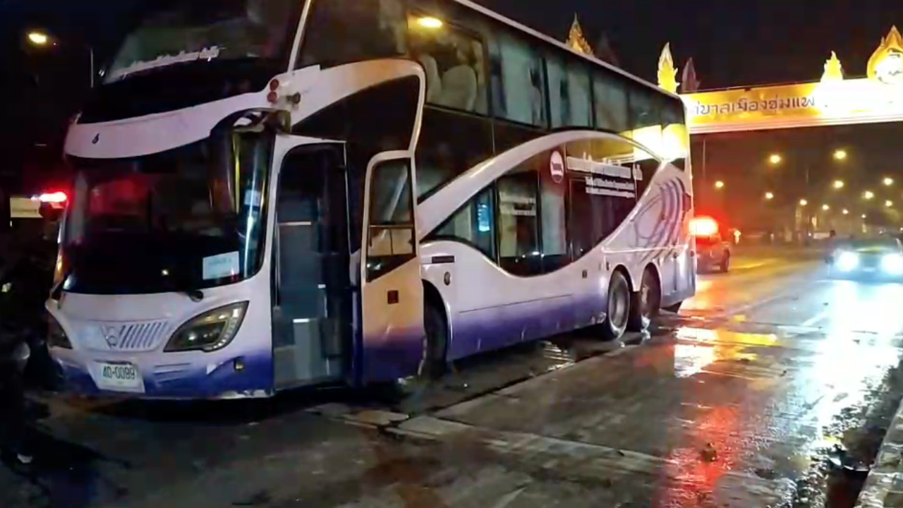 ต่อมา พ.ต.ท.เอกศิษฎ์ ศิรสิทธิ์พงศ์พล สว.สอบสวน สภ.ชุมแพ จ.ขอนแก่น พร้อมด้วยแพทย์เวร รพ.ชุมแพ หน่วยกู้ภัยเต็กก่าจีแชเกาะ รุดไปตรวจสอบ ที่เกิดเหตุอยู่บนถนนฝั่งตรงข้ามหน้าธนาคารออมสิน พบรถยนต์ปิกอัพอีซูซุสีบรอนซ์เงินแบบโอเพ่นแค็ปทะเบียน 2ฒม 5871 กรุงเทพมหานคร จอดอยู่กลางถนนในสภาพพังยับเป็นเศษเหล็ก ด้านซ้ายของรถอีซูซุคันเกิดเหตุมีรถทัวร์ยี่ห้อเบนซ์ สีขาว-ม่วง ทะเบียน 40-0099 เลย จอดอยู่ข้างทาง ท้ายรถด้านขวามีร่องรอยเฉี่ยวชนอย่างแรง