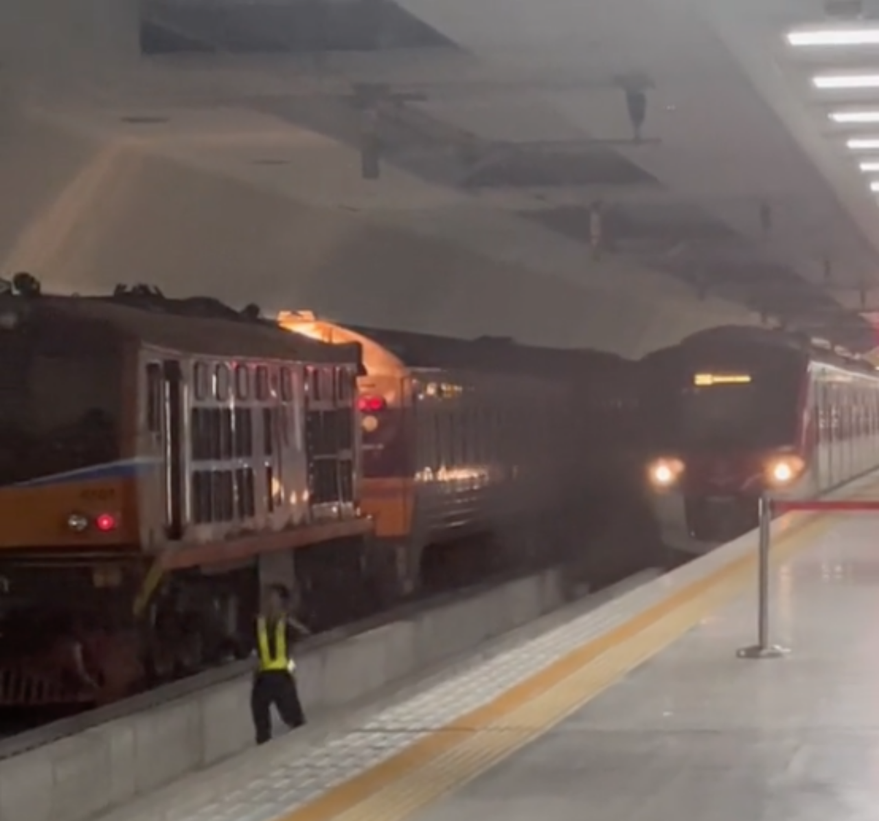 ซึ่งในคลิปวิดีโอนั้น ถูกบันทึกที่สถานีกลางกรุงเทพอภิวัฒน์ หรือสถานีกลางบางซื่อ ขณะที่มีพนักงานการรถไฟท่านหนึ่งวิ่งบนรางรถไฟ โดยข้างหลังนั้นมีรถไฟสายสีแดงกำลังวิ่งเข้าสถานี สร้างความตกใจให้คนที่พบเห็นเป็นอย่างมาก