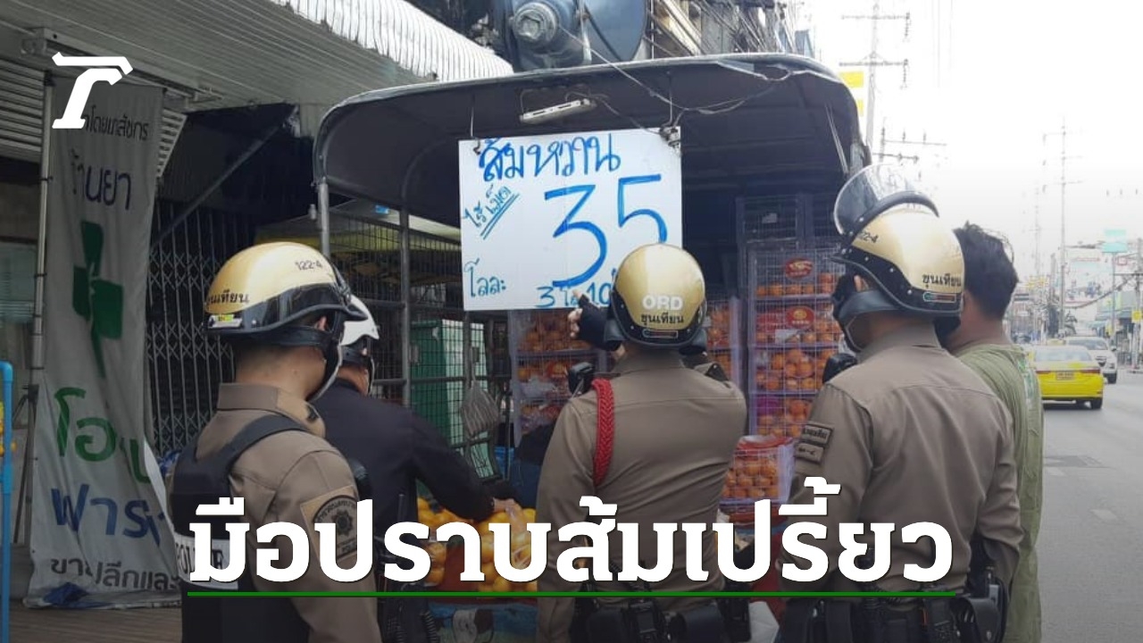 พ่อค้าแม่ค้าระวังไว้ ตำรวจบางขุนเทียน ลุยปราบ "ส้มไม่ตรงปก" ติดป้ายส้มหวานไร้เมล็ด แต่พอซื้อไปแล้วกลายเป็น ส้มเปรี้ยวมีเมล็ด