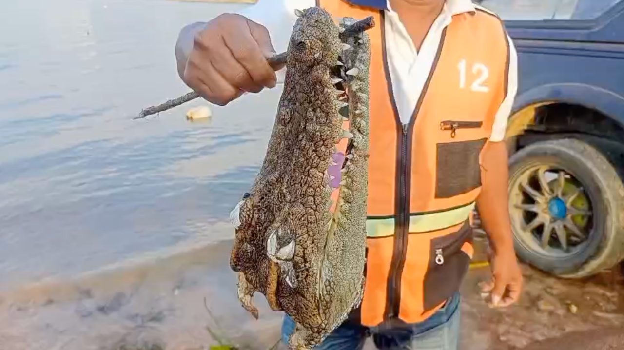 มาได้ยังไง พบ "หัวจระเข้" บริเวณอ่างเก็บน้ำบางพระ จ.ชลบุรี คาดถูกชำแหละเนื้อ แล้วเอาหัวมาทิ้งไว้