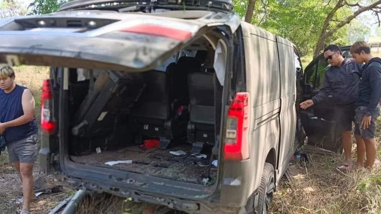 วันที่ 26 กุมภาพันธ์ 2566 ร.ต.อ.พีรพันธุ์ อัครเดชโชติการ รองสารวัตร (สอบสวน) สภ.นางรอง อ.นางรอง จ.บุรีรัมย์ รับแจ้งว่า มีรถตู้พุ่งชนต้นไม้ข้างทาง บนถนนสาย 24 โชคชัย-เดชอุดม เขต ต.ถนนหัก อ.นางรอง จึงประสานหน่วยกู้ภัยสยามรวมใจ เข้าร่วมตรวจสอบ ที่เกิดเหตุพบรถตู้ ยี่ห้อโตโยต้า มาเจสตี้ สีดำ ทะเบียน 1 นข 558 กรุงเทพฯ ชนต้นไม้ข้างทาง