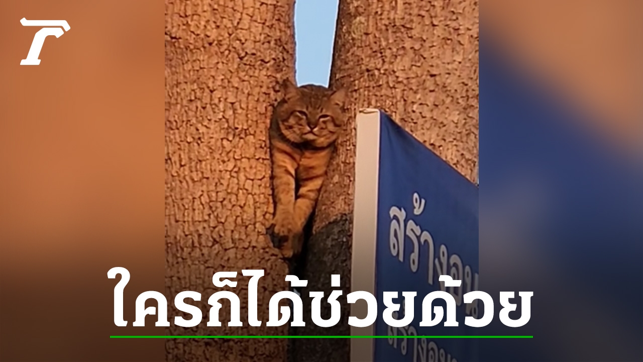 ความอ้วนเป็นเหตุ คลิปไวรัลสาวช่วยแมวส้มติดต้นไม้ แต่ลงไม่ได้ เพราะน้องอ้วนเกินไป ด้านโซเชียลแห่คอมเมนต์