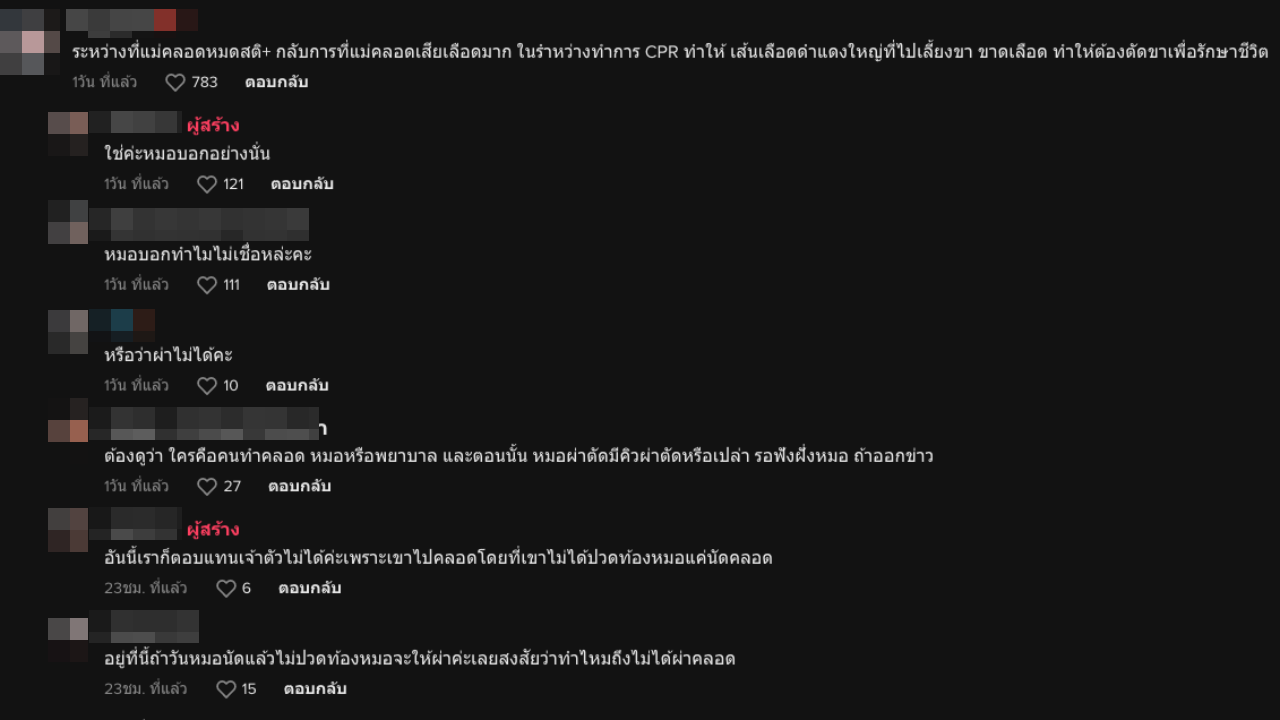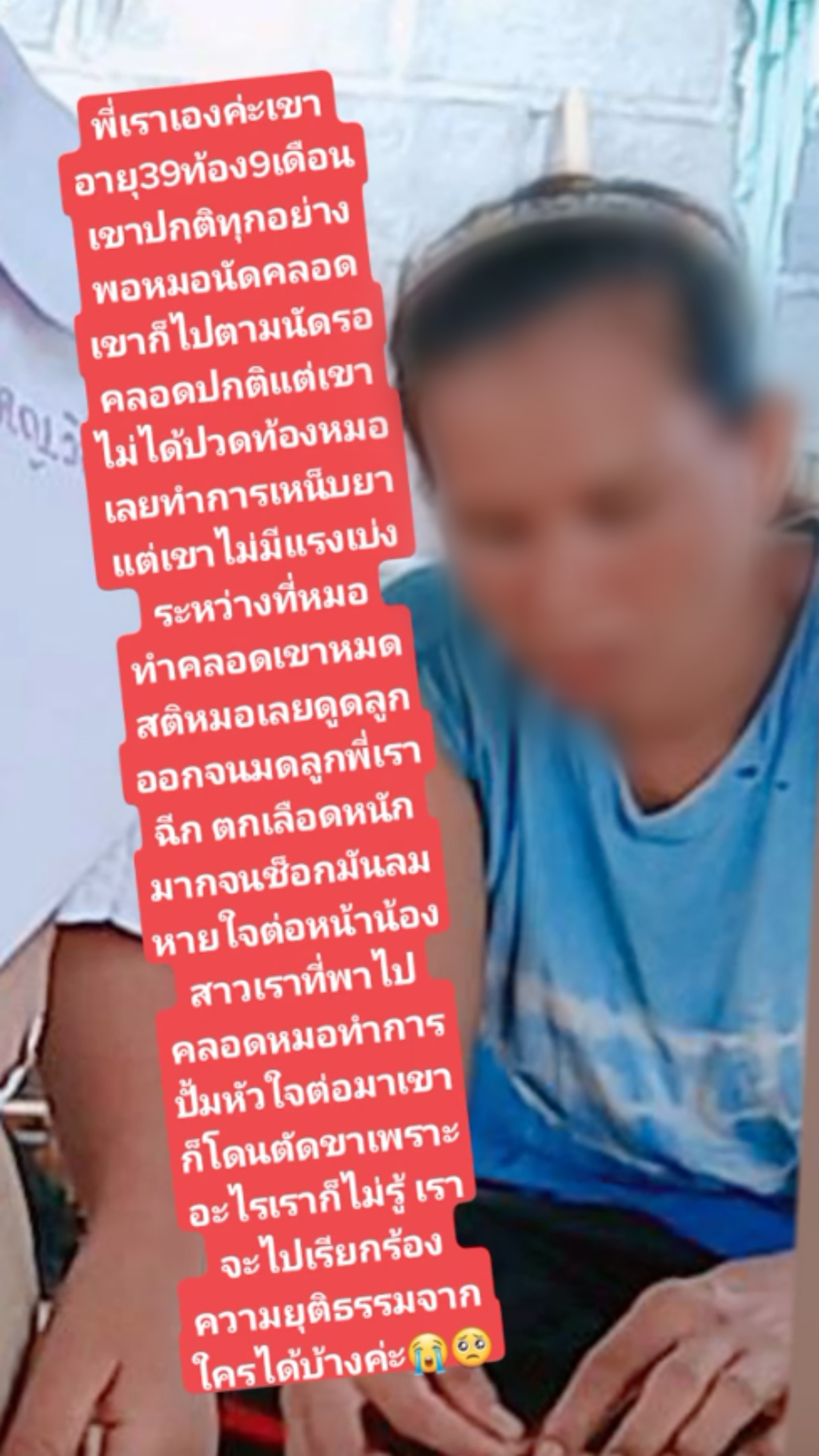 วันที่ 27 มี.ค. 66 ผู้สื่อข่าวรายงานว่า จากกรณีผู้ใช้ TikTok รายหนึ่งโพสต์ระบายความรู้สึกคาใจที่พี่สาวท้อง 9 เดือนไปคลอด รพ.แห่งหนึ่ง แต่สุดท้ายกลับถูกตัดขา โดยระบุข้อความเล่าว่า "พี่เราเองค่ะเขาอายุ 39 ปี ท้อง 9 เดือน เขาปกติทุกอย่าง พอหมอนัดคลอดเขาก็ไปตามนัดรอคลอดปกติ แต่เขาไมได้ปวดท้องหมอเลยทำการเหน็บยา แต่เขาไม่มีแรงเบ่งระหว่างที่หมอทำคลอดเขาหมดสติ หมอเลยดูดลูกออกจนมดลูกพี่เราฉีก ตกเลือดหนักมากจนช็อกหมดลมหายใจต่อหน้าน้องสาว เราที่พาไปคลอดหมอทำการปั้มหัวใจต่อมาเขาก็โดนตัดขา เพราะอะไรเราก็ไม่รู้ เราจะไปเรียกร้องความยุติธรรมจากใครได้บ้างค่ะ"