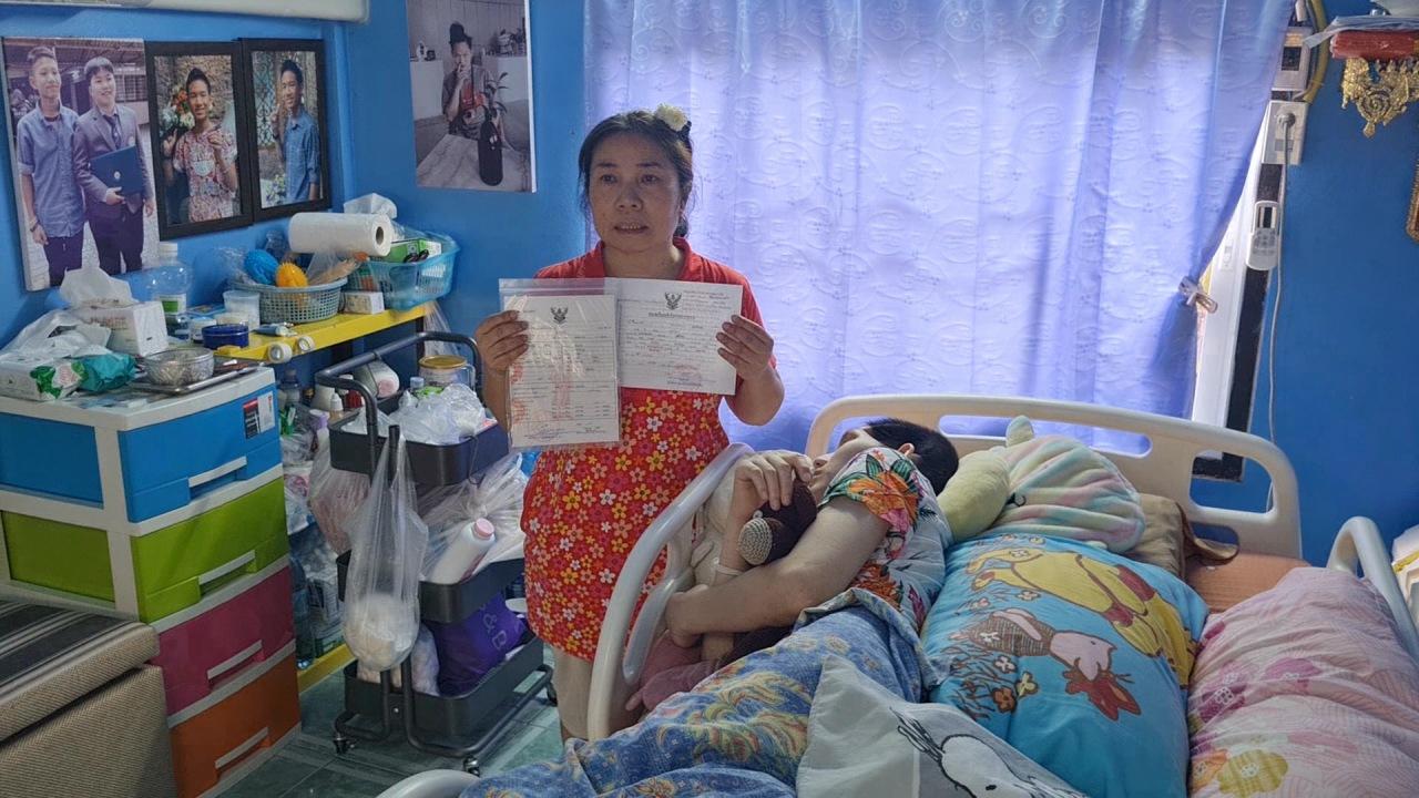 ทั้งนี้ ตนเองก็เข้าใจในระเบียบที่เจ้าหน้าที่อธิบาย แต่ก็อยากจะถามว่ามันไม่มีทางออกหรือหนทางอื่นอีกเหรอ อยากจะขอวิงวอนให้คู่กรณีมาช่วยเหลือแบ่งเบาภาระตนเองบ้าง และหากมีผู้ใจบุญมาช่วยเรื่องผ้าอ้อมหรือข้าวของจำเป็นสำหรับผู้ป่วยตนเองก็ยินดีรับ