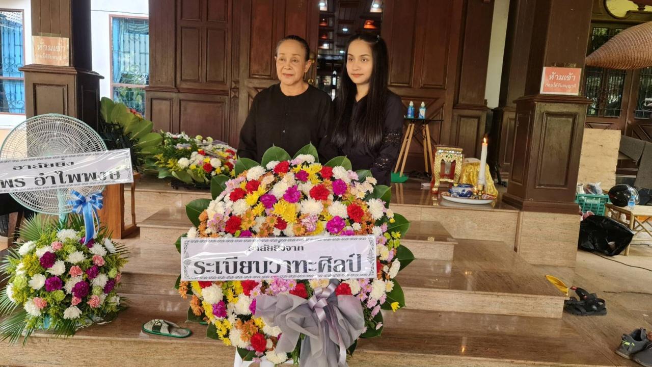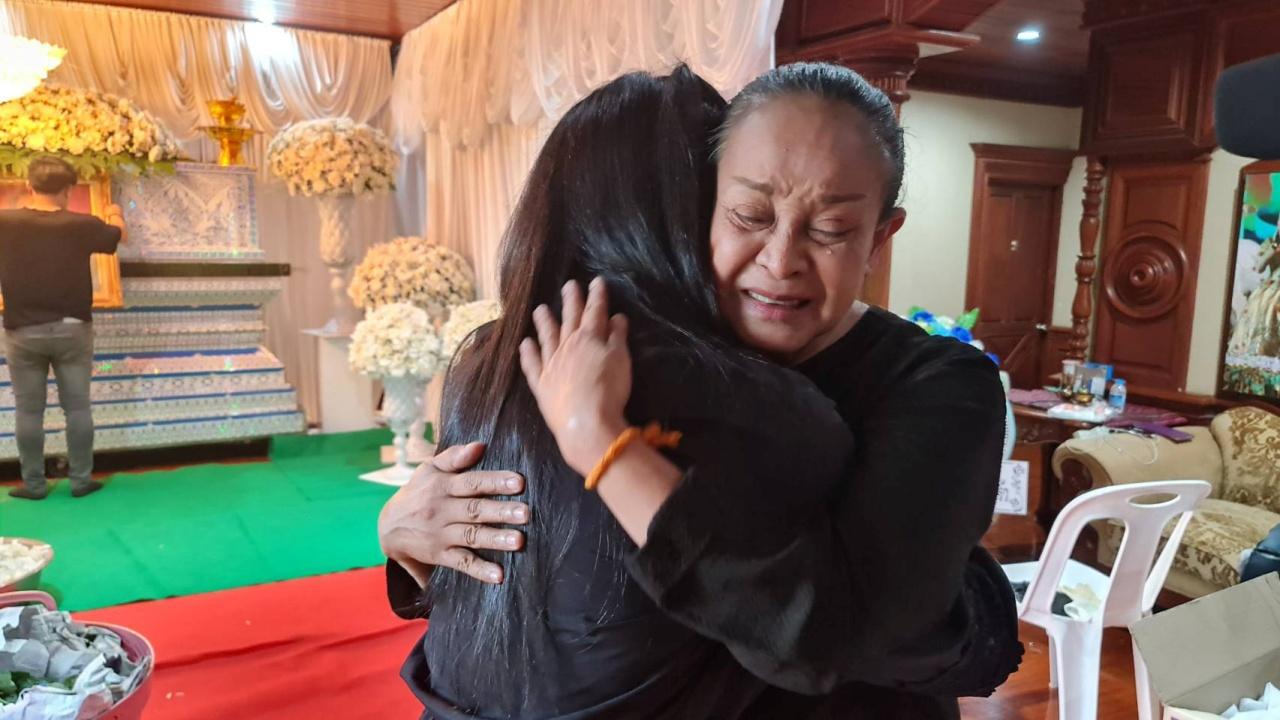 จากนั้นแม่นกน้อยก็เดินมาดูรูปด้วยความโศกเศร้า ก่อนจะร่ำไห้และกอด น.ส.ณัฐธิดาพร ขันคำ อายุ 29 ปี หรือน้องแป้ง หลานสาว ซึ่งเป็นนางเอกคณะเสียงอิสาน แล้วเดินไปรับพวงหรีดที่คณะหมอลำต่างๆ ส่งมาแสดงความเสียใจ