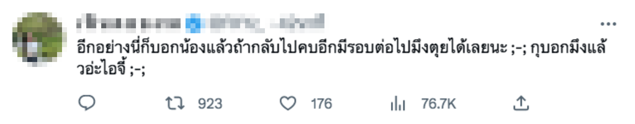 - ส่วนน้องสาวของฝ่ายชาย ซึ่งก่อนหน้านี้มีการขุดแชตว่า เธอเคยส่งข้อความไปต่อว่า จีจี้ อ้างสาเหตุที่ถูกพี่ชายทำร้าย ก็พบว่าได้ปิดไอจีไปเรียบร้อยแล้ว.