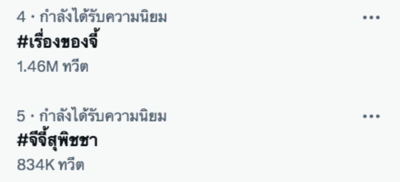 - หลังจากมีข่าวว่า จีจี้ เสียชีวิต แฮชแท็ก #เรื่องของจี้ และ #จี้จี้สุพิชชา ติดเทรนด์ทวิตเตอร์อย่างรวดเร็ว โดยเพื่อนและคนใกล้ชิดออกมาเปิดเผยข้อมูลที่ผ่านมา ว่า ฝ่ายหญิงจะต้องเจอกับอะไรบ้าง