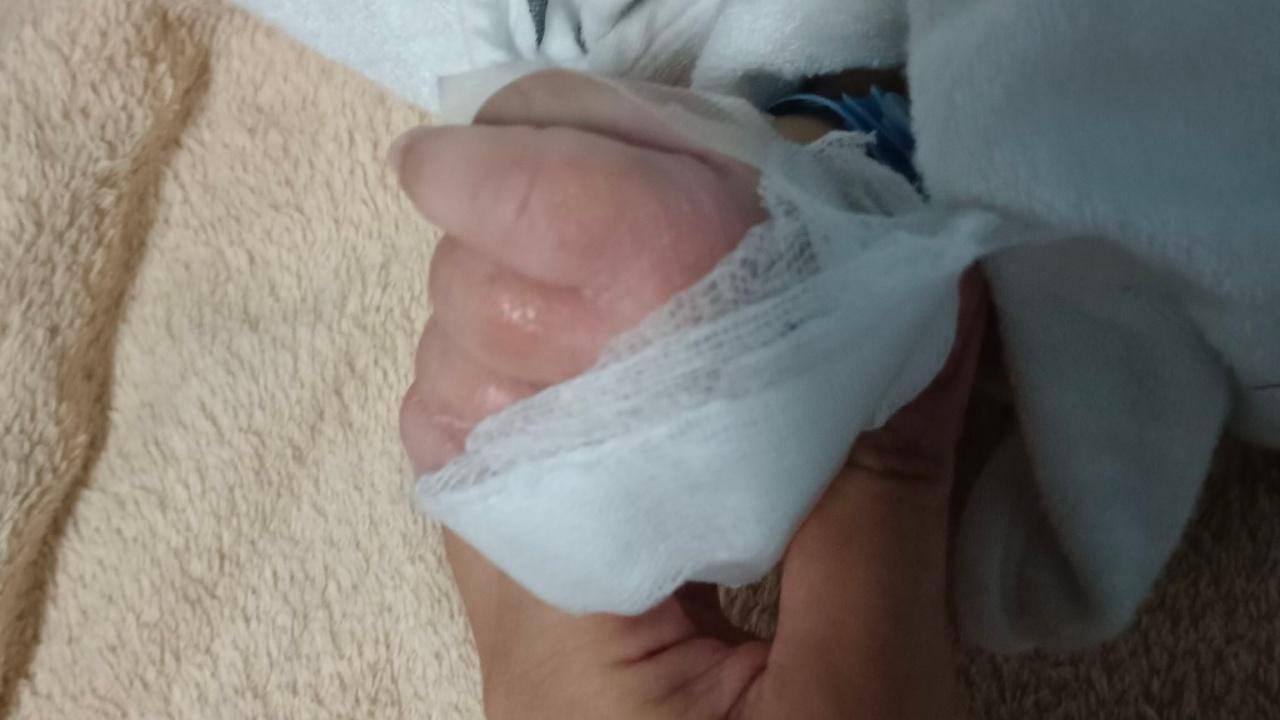 เมื่อมาถึงโรงพยาบาลเด็ก แพทย์ได้ดูแผลและรับตัวไว้นอนโรงพยาบาลให้ยาฆ่าเชื้อต่อ เพราะอาการที่มือน่าจะติดเชื้อ แต่ยังไม่ระบุว่าเป็นการติดเชื้ออะไร ต้องรอผลการเพราะเชื้อจากห้องแล็ปก่อน ล่าสุดอาการของน้องดีขึ้น อาการบวมที่มือเริ่มลดลง ตนจึงได้โพสต์ข้อความดังกล่าว