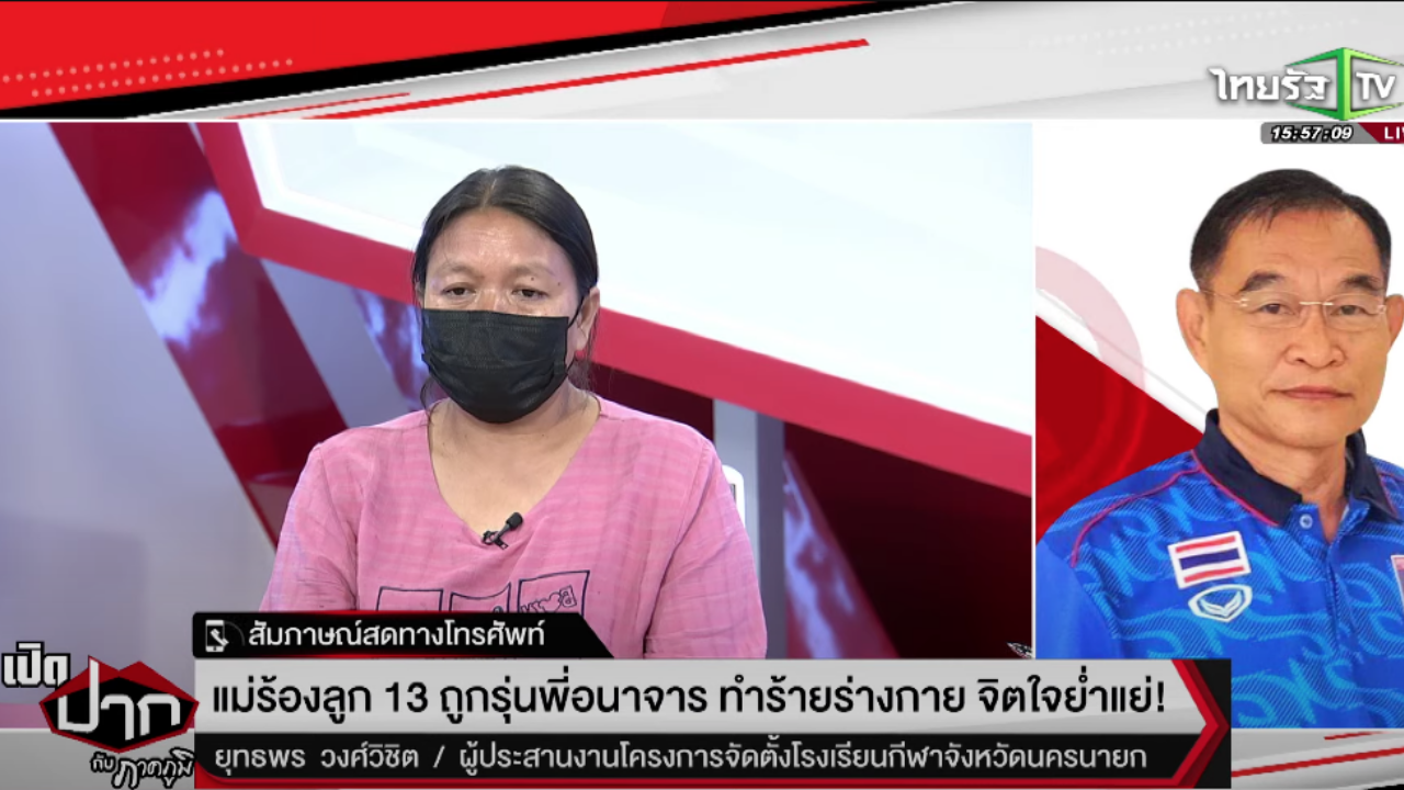 เมื่อเวลา 15.30 น. วันที่ 21 เมษายน 2566 ในรายการ "เปิดปากกับภาคภูมิ" ทางไทยรัฐทีวี ช่อง 32 ดำเนินรายการโดย นายภาคภูมิ พันธุ์สถิตย์ ได้พูดคุยกับแม่ของเด็ก 13 ปี ผู้เสียหาย คุณกัณฐัศว์ พงศ์ไพบูลย์เวชย์ หรือ กัน จอมพลัง และทนายโรส ในปมแม่ร้องให้ช่วย หลังลูกชายอายุ13 ปี ถูกรุ่นพี่รุมบังคับให้แก้ผ้า ถ่ายคลิปข่มขู่ให้เป็นเบ๊ แถมกลั่นแกล้งสารพัด จนเกิดอาการซึมเศร้า ไม่กล้าไปโรงเรียน