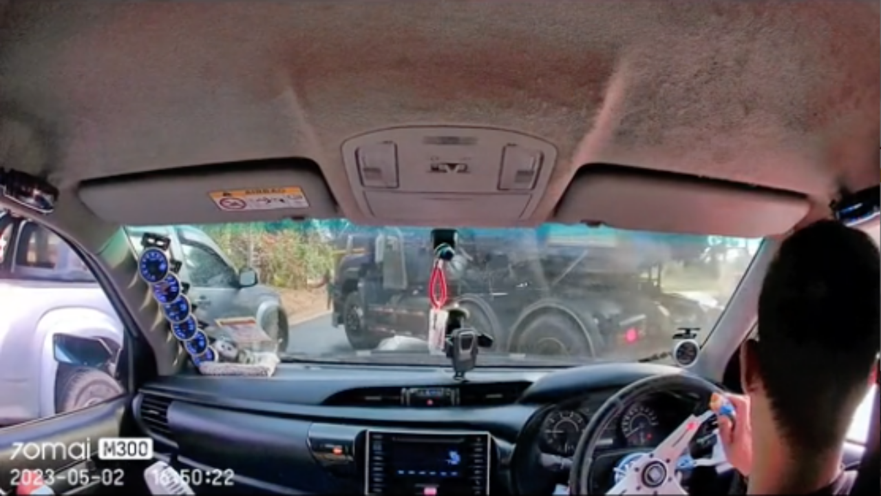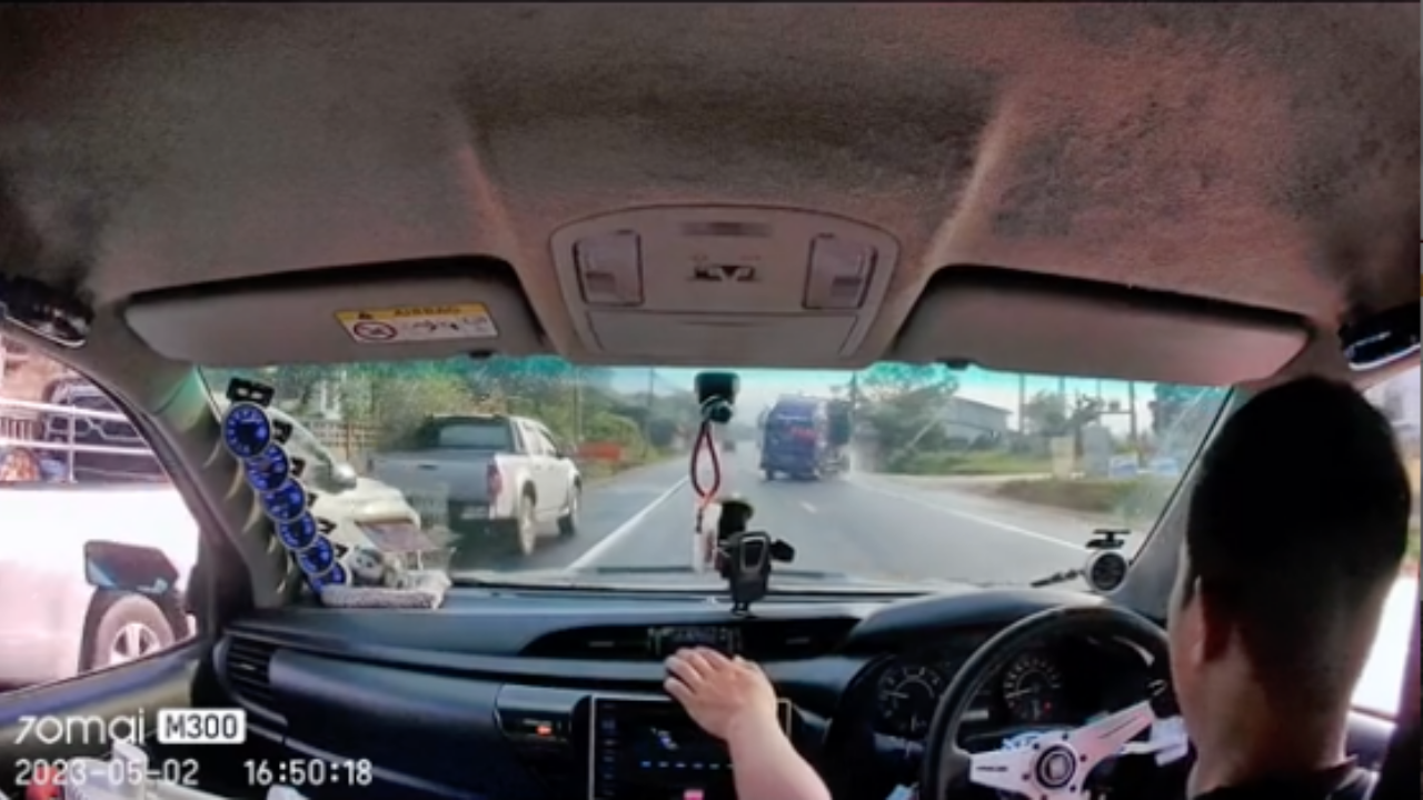วันที่ 3 พฤษภาคม 2566 ผู้สื่อข่าวรายงานว่า โลกออนไลน์ได้แชร์คลิปชวนหวาดเสียวของผู้ใช้บัญชี TikTok @phat5766 ซึ่งเป็นคลิปจากกล้องในรถ บริเวณหน้าปั๊มน้ำมันแห่งหนึ่งที่แม่จัน จ.เชียงราย พร้อมระบุข้อความว่า เกือบจะไม่รอดแล้ว ดวงล้วนๆ โชคยังดีไม่คิดว่าจะรอดแล้ว ดวงล้วนๆ
