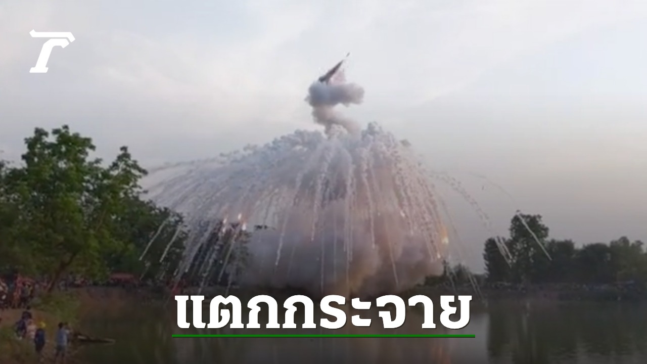 นาทีระทึก บั้งไฟสิบล้าน แตกกระจายกลางอากาศใน จ.มหาสารคาม ควันโขมง ชาวบ้านวิ่งหนี บาดเจ็บ 8 ราย ชาวบ้านบอกที่ผ่านมาไม่เคยแตก แต่ปีนี้แตกแล้ว 2 ครั้ง