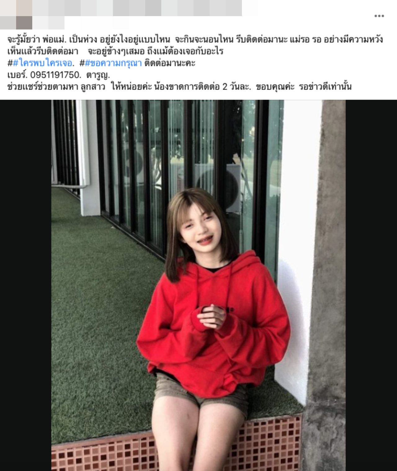 วันที่ 9 พฤษภาคม 2566 มีรายงานว่า ในโลกออนไลน์ได้ช่วยกันแชร์โพสต์ประกาศตามหา น้องปิงปอง สาวลำปางวัย 16 ปี หายตัวออกจากบ้านใน ต.สมัย อ.สบปราบ จ.ลำปาง ขาดการติดต่อไป 2 วัน หากใครพบขอให้ติดต่อมาที่เบอร์ 095-1191750 ตารูญ
