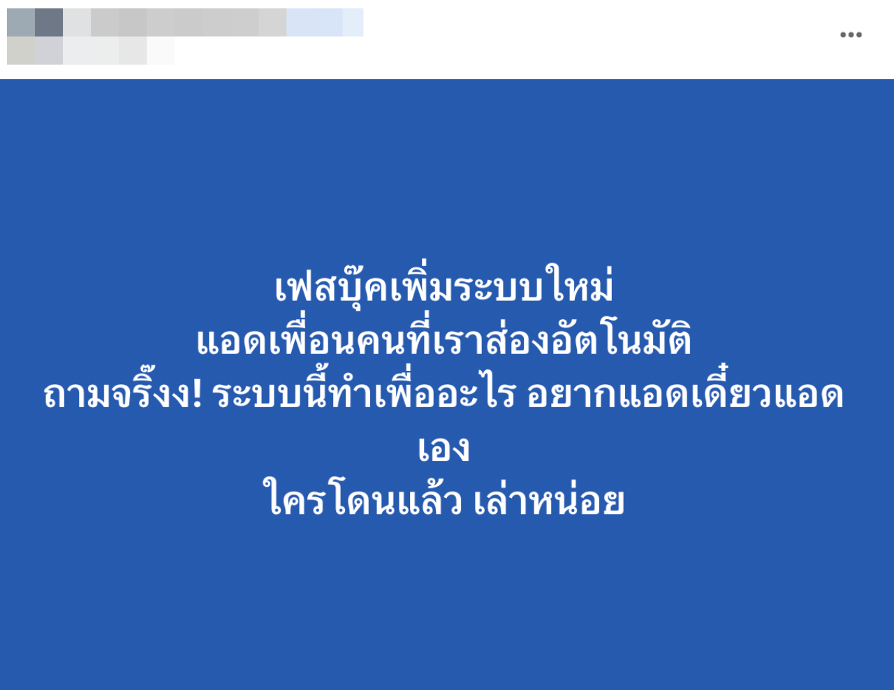 สายส่องแตกตื่น หลายคนเจอปัญหา "เฟซบุ๊ก" แอดเพื่อนให้เอง แค่ส่องก็เพิ่มเพื่อนอัตโนมัติ ทำเอาคอมเมนต์สนั่นโซเชียล