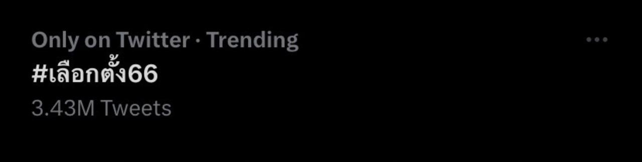ขณะที่โลกออนไลน์ก็คึกคักไม่แพ้กัน มีการอัปเดตสถานการณ์ รวมถึงรายงานผลการเลือกตั้ง พร้อมติดแฮชแท็ก #เลือกตั้ง66 และ #เริ่มใหม่ไทยแลนด์ จนพุ่งติดเทรนต์ทวิตเตอร์อย่างต่อเนื่อง รวมถึงแฮชแท็ก #นายกคนที่30