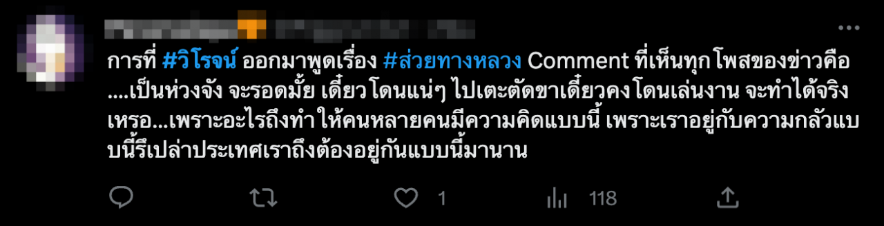 อย่างไรก็ตาม ในช่วงที่ นายวิโรจน์ ออกมาแฉปัญหาส่วยต่างๆ เหล่านี้ ทำให้แฮชแท็ก #วิโรจน์ ติดเทรนด์ทวิตเตอร์ คนเข้ามาแสดงความคิดเห็นเกี่ยวกับเรื่องนี้อย่างต่อเนื่อง.