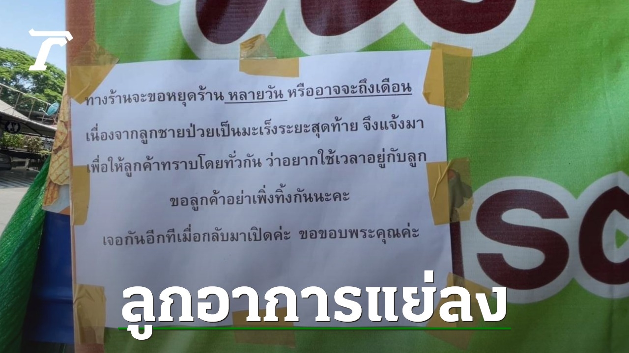 ขอร้องลูกค้าอย่าทิ้งกัน ครอบครัวขายอาหารตามสั่ง ติดป้ายประกาศแจ้งปิดร้านไม่มีกำหนด หลังลูกชายวัย 10 ขวบ ป่วยเป็นมะเร็งระยะสุดท้าย ขอใช้เวลากับลูกชายให้นานที่สุด