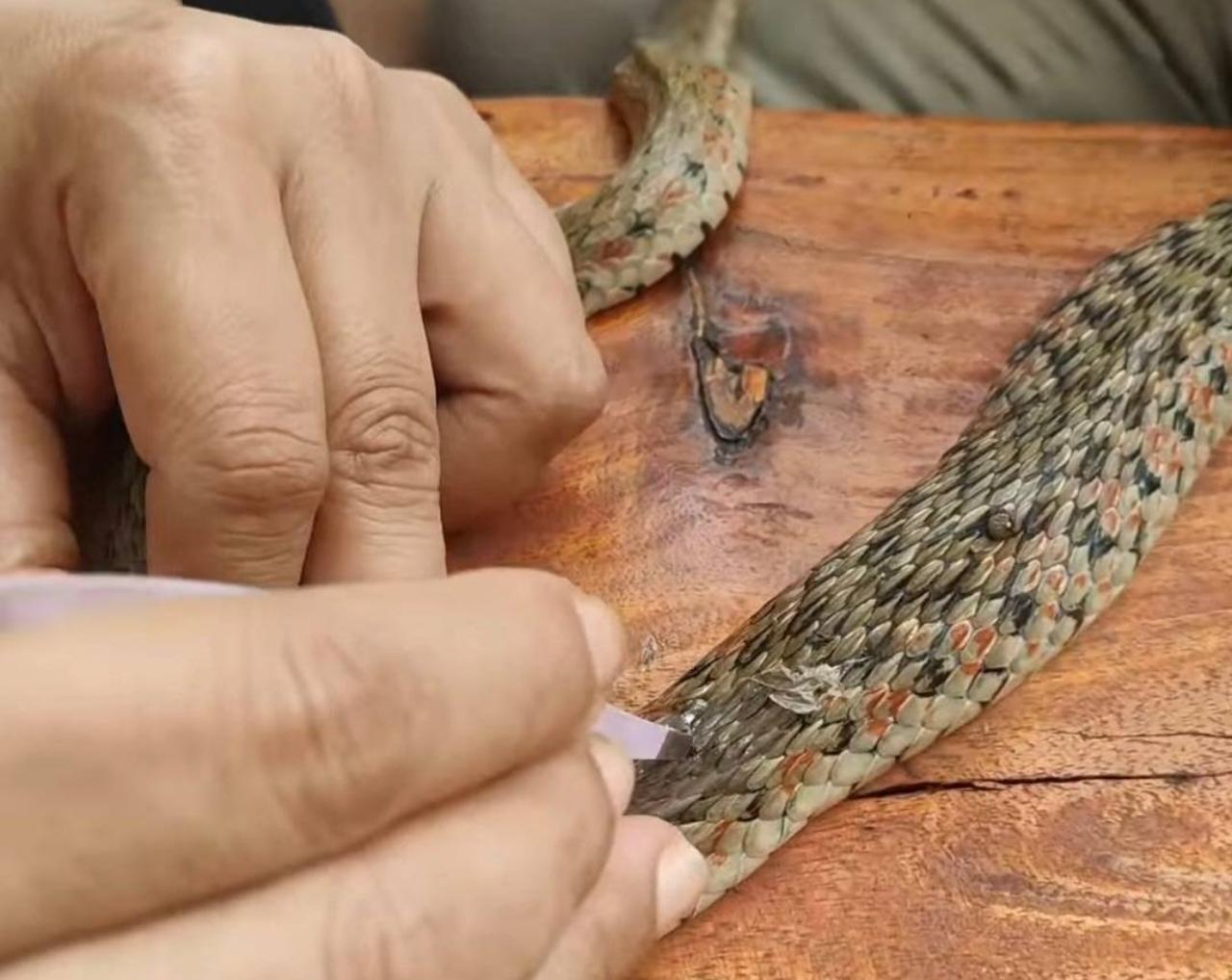 จากการสอบถามไปที่แฟนเพจ Nick Wildlife ของ คุณนิค นิรุทธ์ ชมงาม ผู้เชี่ยวชาญเรื่องงูของประเทศไทย ให้ความรู้ว่า ในคลิปเป็นการจับเห็บออกให้งูลายสอ เป็นงูไม่มีพิษ คาดว่าผู้ทำน่าจะสงสาร แต่มีการควบคุมหัวงูไว้ ไม่ให้งูแว้งมากัด
