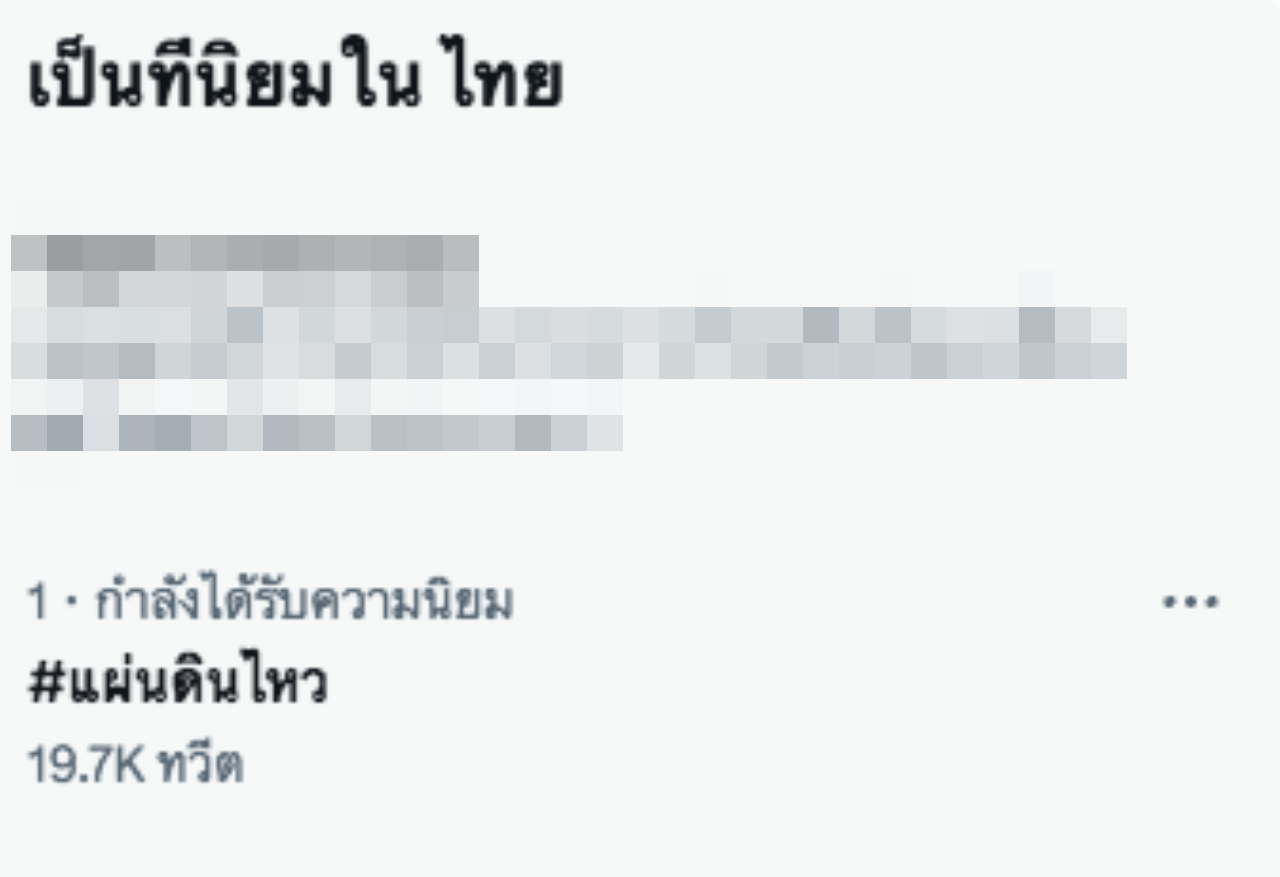 โซเชียลติดแฮชแท็ก #แผ่นดินไหว พุ่งติดเทรนด์อันดับ 1 ทวิตเตอร์ หลังคนบนตึกสูงบางส่วนในกรุงเทพฯ และจังหวัดนนทบุรี รับรู้ได้ถึงแรงสั่นสะเทือน
