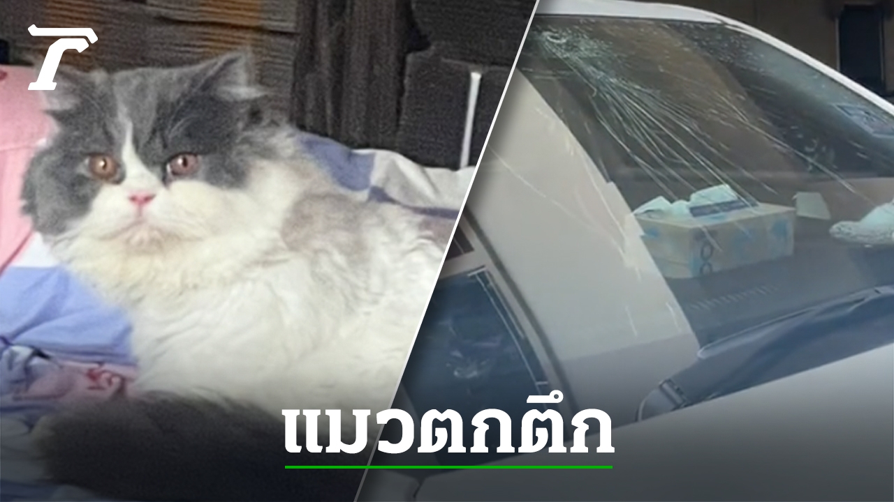 ใจหายอีกแล้ว เจ้าของเผยวีรกรรม เหมียวตกตึก หล่นใส่กระจกหน้ารถเป็นรู อาการเบื้องต้นแมวคางแตก เป็นแผลเล็กน้อย