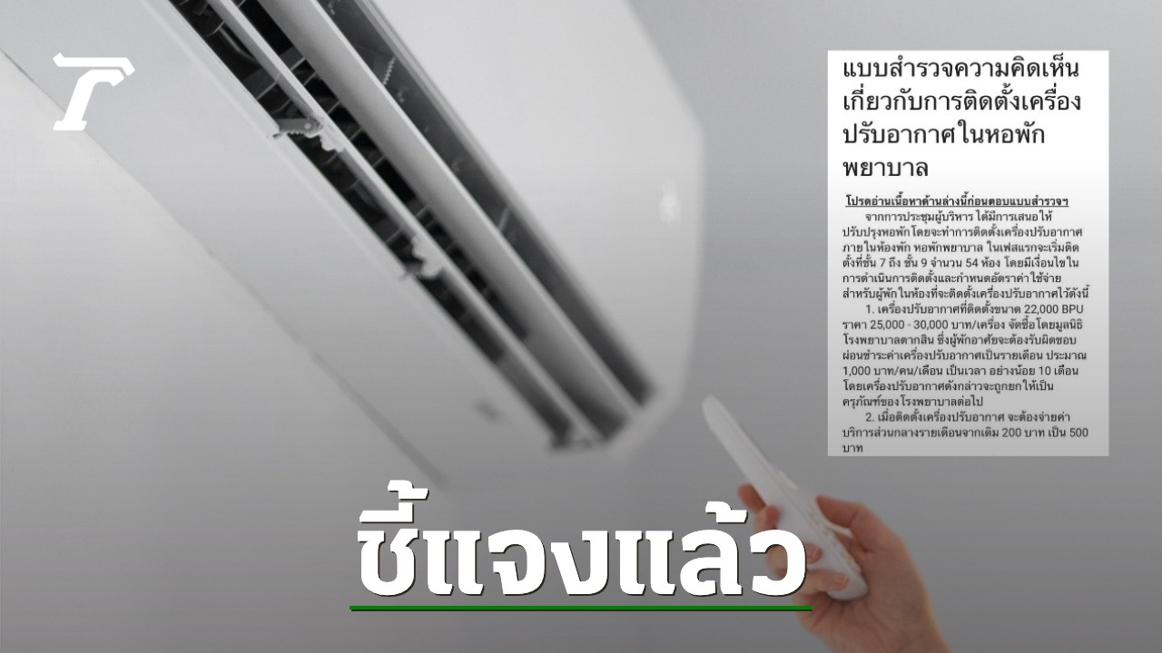 สรุปดราม่า รพ.ดัง ปมแบบสำรวจติดแอร์ให้เจ้าหน้าที่ผ่อนเอง แต่ต้องยกเป็นครุภัณฑ์ ล่าสุดชี้แจงแล้ว เกิดความผิดพลาดในการสื่อสารข้อความ
