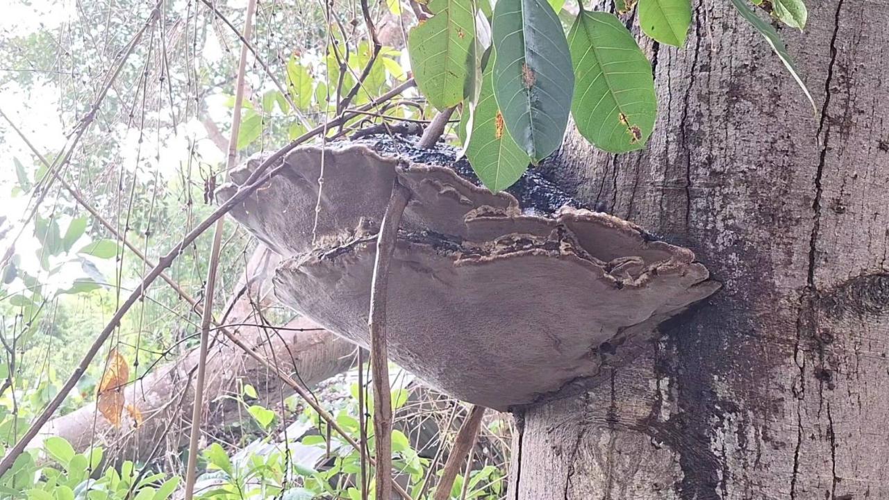 วันที่ 27 มิถุนายน 2566 มีรายงานว่า จากกรณีพบเห็ดยักษ์แปลกติดฮ่างต้นไม้ใหญ่อายุกว่า 500 ปี ที่ยืนต้นอยู่ด้านหลังพระเจ้าทันใจ ริมถนนก่อนถึงน้ำตกแม่เหยี่ยน ต.บ้านใหม่ อ.เมือง จ.พะเยา โดยเห็ดยักษ์ประหลาดเกาะติดลำต้นของต้นไม้สูงจากพื้นประมาณ 2 เมตร ออกดอกบานมีขนาดยาว 1.50 เมตร กว้าง 70-80 เซนติเมตร ลักษณะบานแผ่ซ้อนกันเป็นชั้น สีของดอกเห็ดเป็นสีเทาปนดำ เป็นเห็ดแข็ง หรือเห็ดหลินจือหรือเห็ดกระด้าง ที่สำคัญคือมีควันสีขาวพวยพุ่งล่องลอยออกมาจากดอกเห็ดตลอดเวลา สร้างความตกตะลึงให้แก่ผู้พบเห็นเป็นอย่างมากนั้น