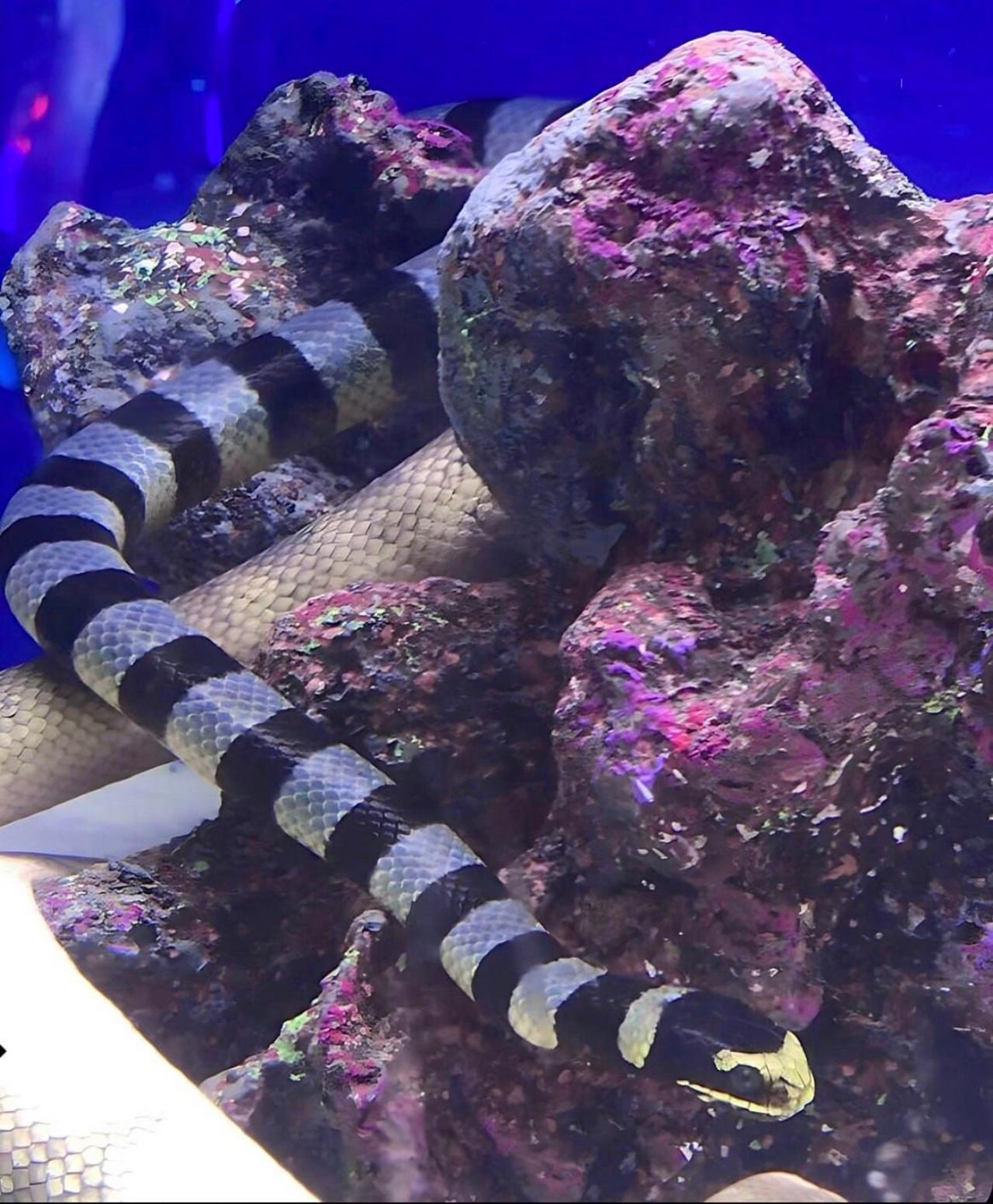 "งูสมิงทะเลปากเหลือง" งูทะเลพิษร้ายแรง ติด 1 ใน 10 ของโลก เป็นหนึ่งในชนิดพันธุ์สัตว์น้ำที่กรมประมงนำมาจัดแสดงในงานภายใต้หัวข้อมหัศจรรย์ในตัวตน ซึ่งนำเสนอถึงสัตว์น้ำที่มีนิสัยเฉพาะตัว เช่น ขี้อาย เชื่องช้า ดุร้าย และน่าเกรงขาม โดยจะให้ความรู้เกี่ยวกับชีววิทยาและพฤติกรรมของงูทะเลมีพิษที่อาจมีโอกาสพบเห็น เพื่อสร้างการรับรู้และสร้างความเข้าใจที่ถูกต้อง หากบังเอิญต้องเผชิญหน้ากับงูชนิดนี้อย่างใกล้ชิด จะได้หลีกเลี่ยงเพื่อไม่ให้เกิดอันตราย โดยเฉพาะนักดำน้ำ และชาวประมง เนื่องจากงูสมิงทะเลปากเหลือง อาจพบได้จากการทำประมง โดยการติดมากับอวน ซึ่งหากชาวประมงไม่ทันสังเกตอาจเป็นอันตรายได้