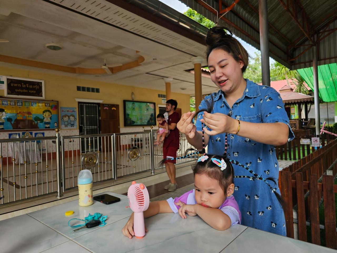 เมื่อน้องโตขึ้นมีโอกาสเห็นแบบทรงผมต่างๆ จากสื่อโซเชียลทั้ง YouTube, Facebook และ TikTok จึงมักจะมาขอให้ตนช่วยทำผมแบบนั้นแบบนี้ให้บ้าง ทำให้ตนต้องตั้งใจศึกษาวิธีการทำ กระทั่งปัจจุบันได้กลายมาเป็นกิจกรรมที่ทำร่วมกันกับลูกสาวในทุกๆ เช้าก่อนไปโรงเรียน ซึ่งน้องกีวี่ก็ไม่ได้อิดออดแต่ประการใด ยินยอมนั่งนิ่งให้ทำผมจนเสร็จสวยงามในระยะเวลาเพียง 10-15 นาที แม้ว่าทรงผมที่ออกมาจะดูน่ารัก สวยงาม เป็นที่สนใจของคนที่ได้พบเห็น แต่ทุกครั้งที่ทำตนจะคอยถามลูกเสมอว่า รู้สึกเจ็บศีรษะหรือไม่ เพราะเป็นห่วงในการทำกิจกรรมในโรงเรียน ซึ่งน้องก็บอกว่าไม่เจ็บ และชอบที่ให้ทำ