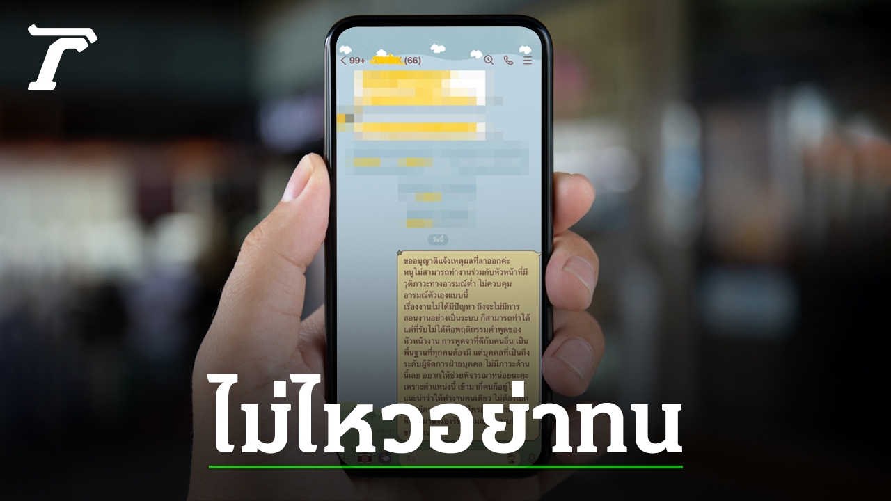 โซเชียลอวยยศ สาวแชตข้อความแจ้งเหตุผล "ลาออก" ซัดไม่สามารถทำงานร่วมกับหัวหน้าที่มีวุฒิภาวะทางอารมณ์ต่ำ ไม่ควบคุมอารมณ์ตัวเอง พร้อมย้ำอย่าทนในสิ่งที่ไม่ควรทน