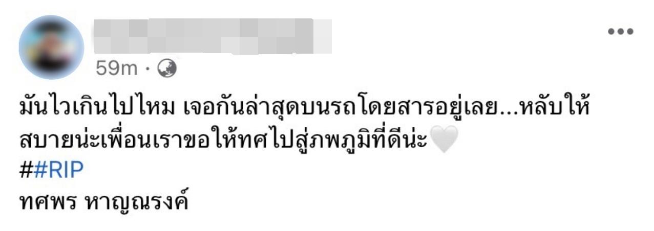 ทำให้มีเสียชีวิตจำนวน 4 ศพ เจ็บสาหัสจำนวนมาก ดังที่นำเสนอข่าวไปก่อนหน้านั้น ซึ่งหนึ่งในผู้เสียชีวิต คือ "ส.อ.ทศพร หาญณรงค์" บรรดาญาติ เพื่อนร่วมงาน คนสนิท เมื่อทราบข่าวต่างได้โพสต์ภาพพร้อมข้อความไว้อาลัยเป็นจำนวนมาก ขณะที่โซเชียลต่างก็เข้าไปแสดงความคิดเห็นร่วมไว้อาลัย และแสดงความเสียใจกับผู้สูญเสียเช่นเดียวกัน.