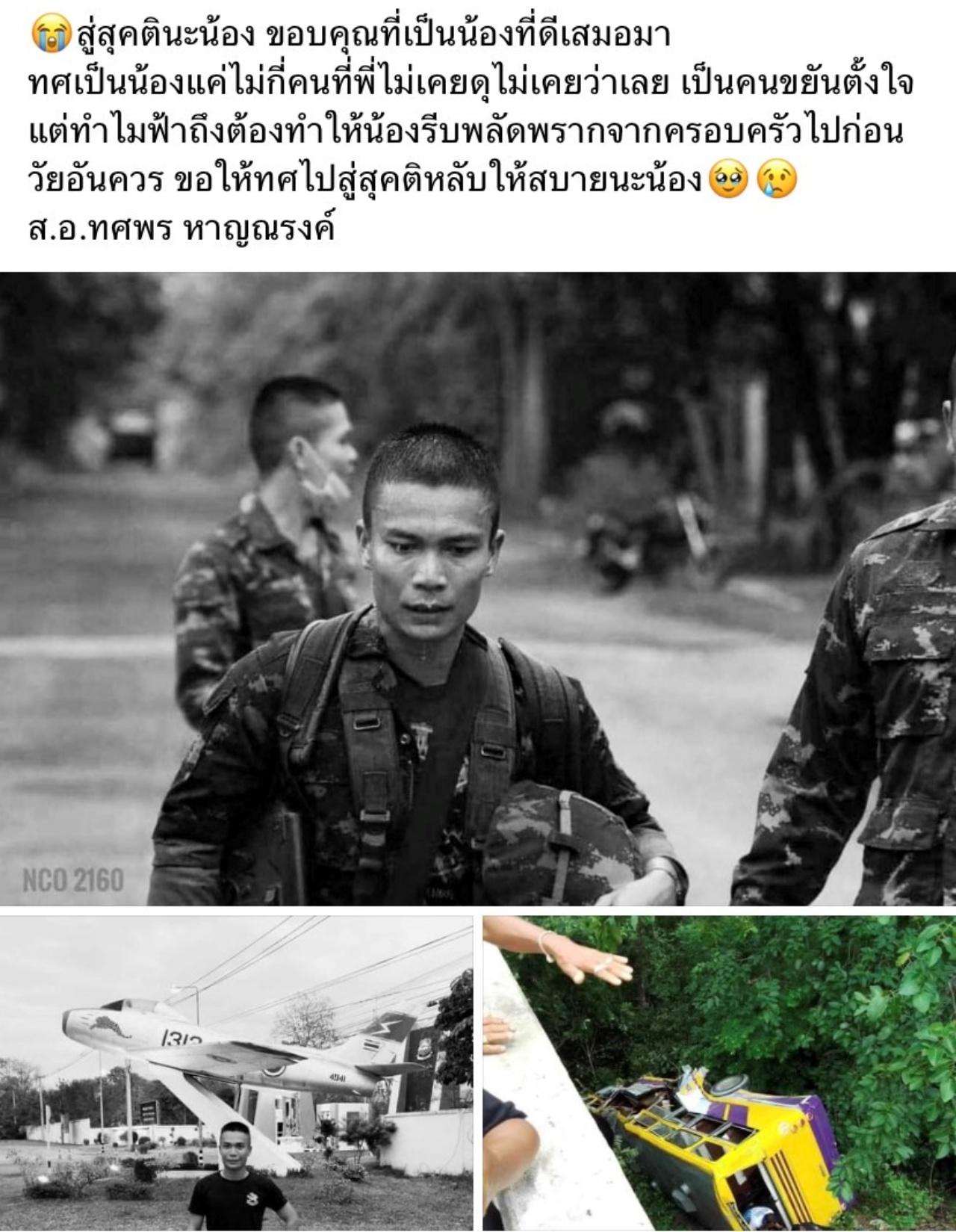 โซเชียลร่วมอาลัย "ส.อ.ทศพร หาญณรงค์" หนึ่งในผู้เสียชีวิตเหตุ "รถบัส" ขนส่งนักกีฬาวิ่งเทรล พลิกคว่ำตกเหว ผาพญากูปรี จ.ศรีสะเกษ