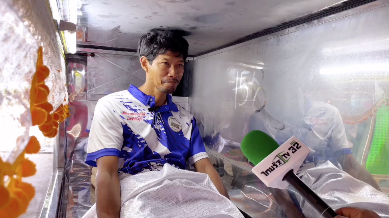 ด้านนายสน วงษ์พา ช่างที่เข้าไปนอนในโลงเย็น กล่าวว่า อากาศภายในโลงเย็น เย็นมากจนถึงขั้นหนาว ต้องนำผ้าเข้ามาห่ม ถามว่ากลัวอาถรรพณ์ไหมที่มานอนแบบนี้ ตนไม่รู้สึกกลัวเลย ที่ผ่านก็ปกติไม่มีเหตุการณ์อะไร แถมนอนหลับสบายเต็มอิ่ม ตื่นมารู้สดชื่น เมื่อนักข่าวถามว่าฝันดีอะไรไหม นายสนไม่ตอบ แต่ใช้มือเขียนเลข 158 ที่ผนังโลง เพื่อเป็นแนวทางให้หลายคนนำไปลุ้นโชค ในวันออกฉลากกินแบ่งรัฐบาลที่กำลังจะถึงนี้.