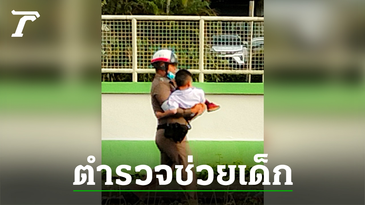 โซเชียลชื่นชม ตำรวจจราจรเมืองพังงาอุ้มเด็กบาดเจ็บส่งโรงพยาบาล ด้านผู้เห็นเหตุการณ์เผยรู้สึกขนลุก ภาพตำรวจอุ้มเด็กลักษณะคล้ายอนุสาวรีย์ตำรวจ