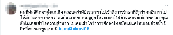โซเชียลเดือด ดันแฮชแท็ก #แสนปิติ พุ่งติดเทรนด์ หลัง "แสนดี" ลูกชายชัชชาติ วิเคราะห์ทิศทางการจัดตั้งรัฐบาลของก้าวไกล ลั่นอย่าด้อยค่าเสียงประชาชน เพราะทุกคนโหวตด้วยความหวัง