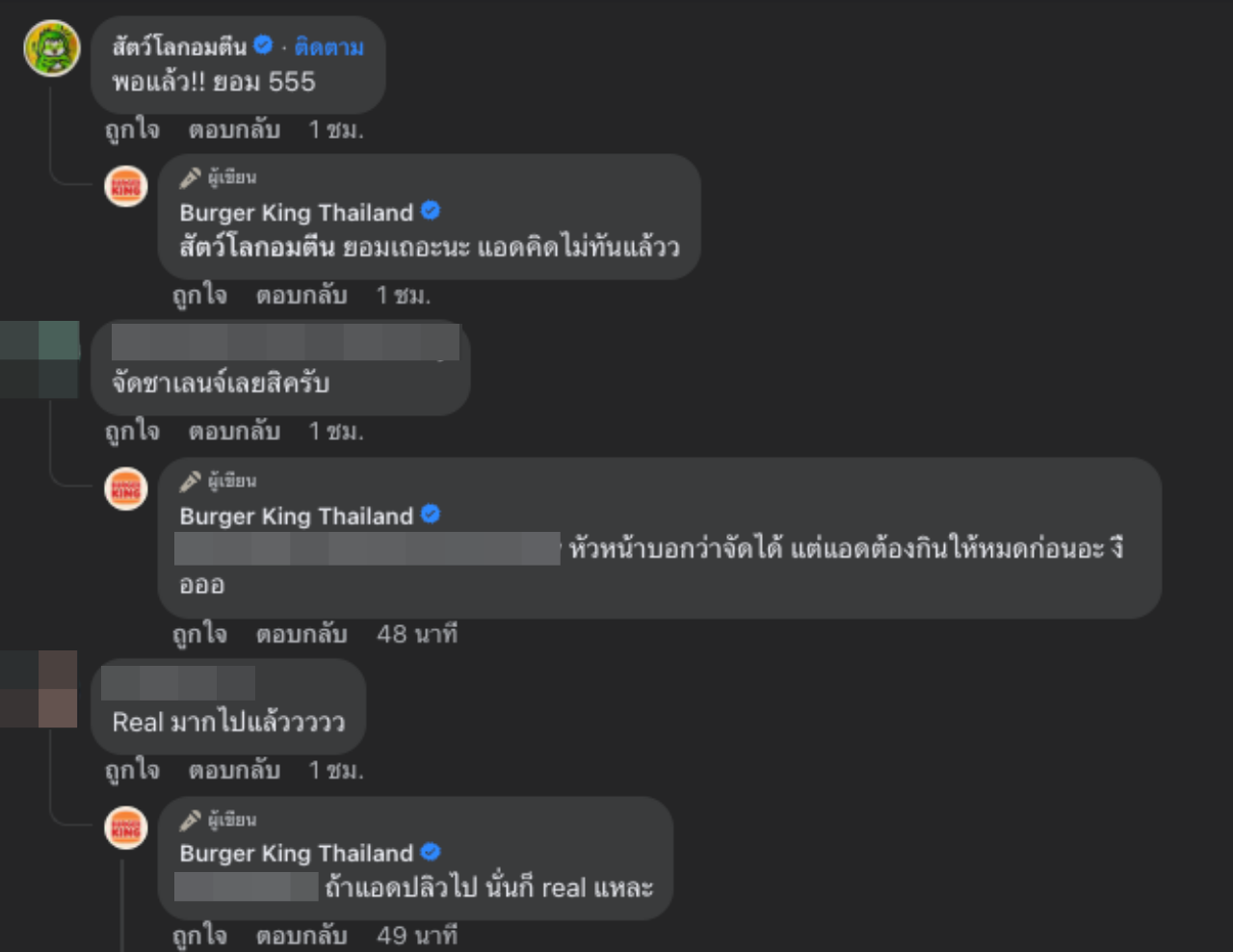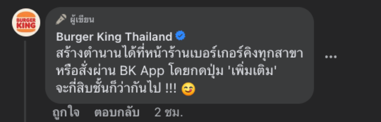 ที่มาจาก เฟซบุ๊ก Burger King Thailand