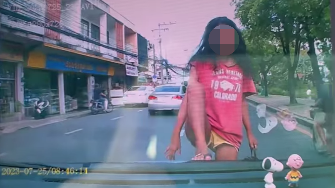 โดยในคลิปนั้น จะพบว่าระหว่างที่เจ้าของโพสต์กำลังขับรถอยู่บนถนน จู่ๆ ก็มีผู้หญิงปริศนาคนหนึ่งเดินมาตัดหน้ารถ ทำให้ต้องหยุดรถ จากนั้นผู้หญิงคนดังกล่าวก็ได้ยกเท้าขึ้นมาถีบรถ ก่อนจะยกมือไหว้ตำรวจที่เดินเข้ามายังที่เกิดเหตุ