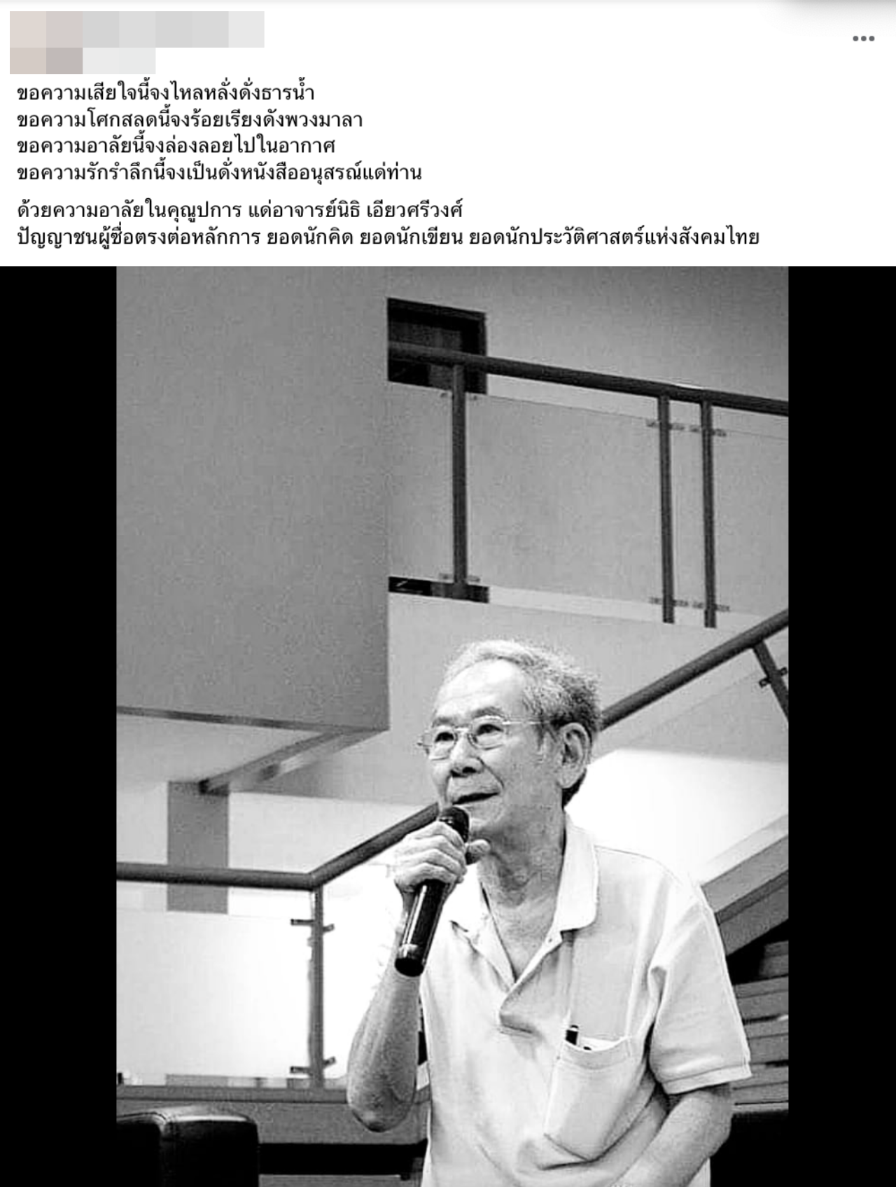 โซเชียลร่วมแสดงความอาลัย "อ.นิธิ เอียวศรีวงศ์" ปัญญาชนคนสำคัญของไทย อดีตอาจารย์ประจำภาควิชาประวัติศาสตร์ คณะมนุษยศาสตร์ มหาวิทยาลัยเชียงใหม่ เสียชีวิตแล้ว