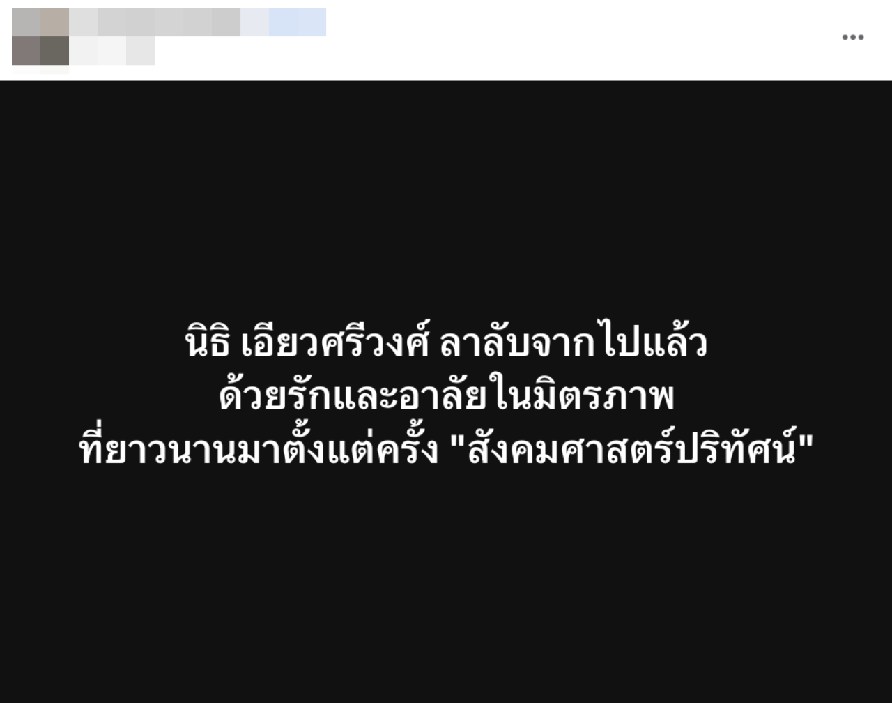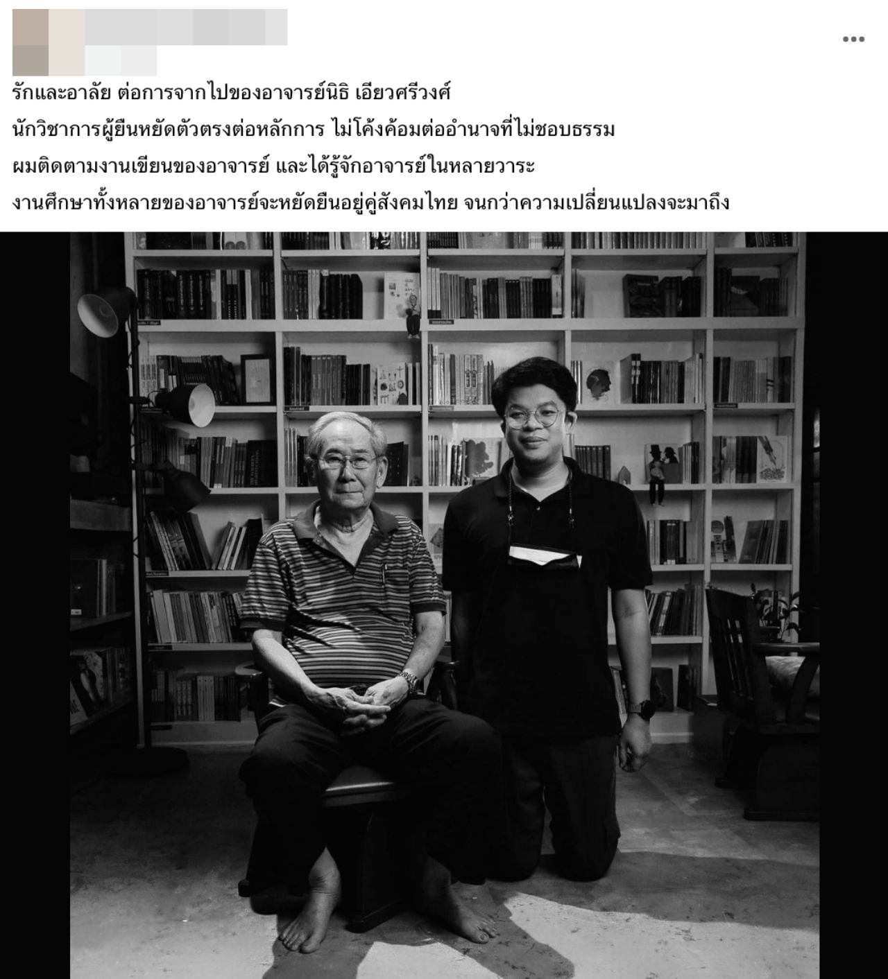 ขณะที่โลกออนไลน์ หลังได้ทราบข่าวการจากไปของ "อาจารย์นิธิ เอียวศรีวงศ์" ก็ได้โพสต์ข้อความอาลัยกันเป็นจำนวนมาก.