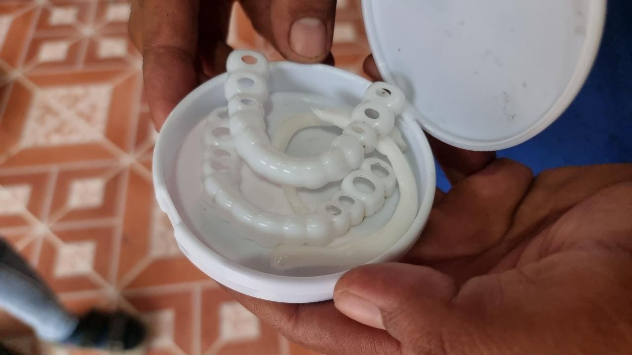 ด้าน นายพิสัย ผู้เป็นพ่อ เล่าว่า ตนได้สั่งฟันมาในราคา 650 บาท ซื้อ 1 แถม 1 เพราะฟันมีปัญหา หลอตรงด้านหน้า และฟันกราม ตนดูในยูทูปและติ๊กต่อก คนในโฆษณาที่ใส่ ฟันเขาก็หลอหมดปาก แถมโฆษณาว่ามีการรับรองจากทันตแพทย์ชั้นนำ จึงสนใจสั่งซื้อ ทางลูกเขาก็ห้าม กลัวว่าเขาจะหลอก แต่ตนอยากลองเลยสั่งมา ผลปรากฏว่าใช้ไม่ได้ มันเป็นพลาสติกนิ่มๆ ใส่แล้วก็ไม่อยู่ ไม่เข้าล็อกฟัน กัดอะไรก็ไม่ได้ ทั้งฟันบนและฟันล่าง