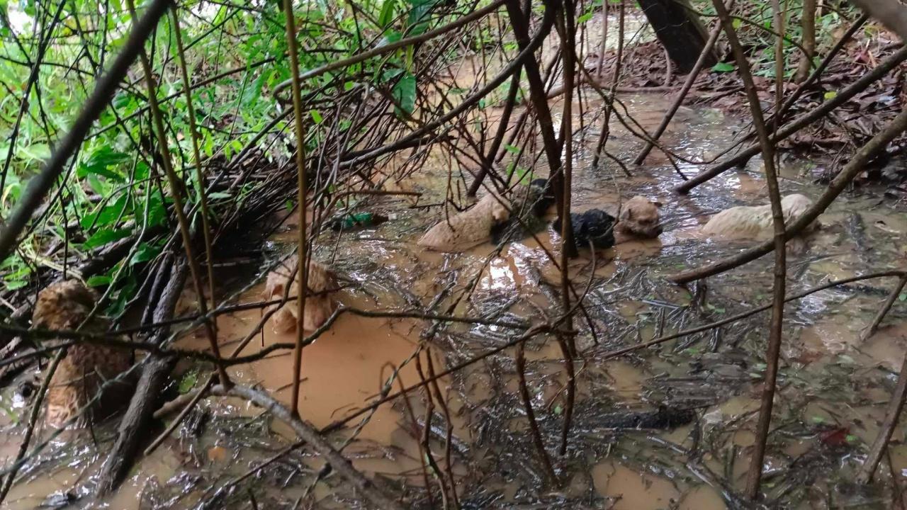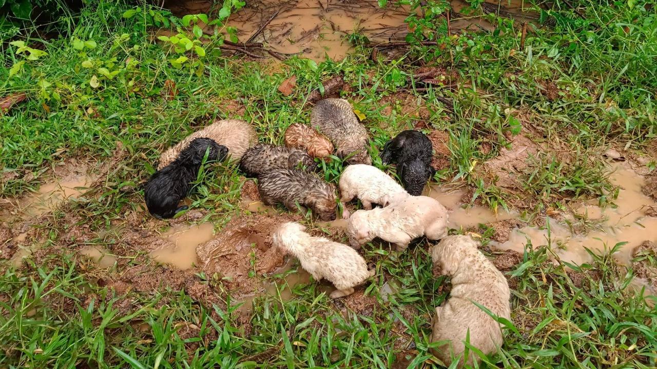 พอไปดูก็สภาพอย่างที่เห็น น้องๆ ก็อยู่ในน้ำบ้าง อยู่บนบกบ้าง ซึ่งบริเวณนั้น ที่น้องๆ อยู่เป็นเหมือนร่องน้ำขังจากฝนตก ตนเองและแฟนไปมุดเข้าไปช่วยน้องออกมาจากป่าแล้วค่อยๆ ช่วยกันลำเลียงน้องออกมา หลังจากนั้น ก็พาน้องมาหลบฝน เพราะน้องหนาว และน่าจะเหนื่อยมาก ในตอนนั้นก็ภาวนาให้น้องรอด และปลอดภัยทุกตัว