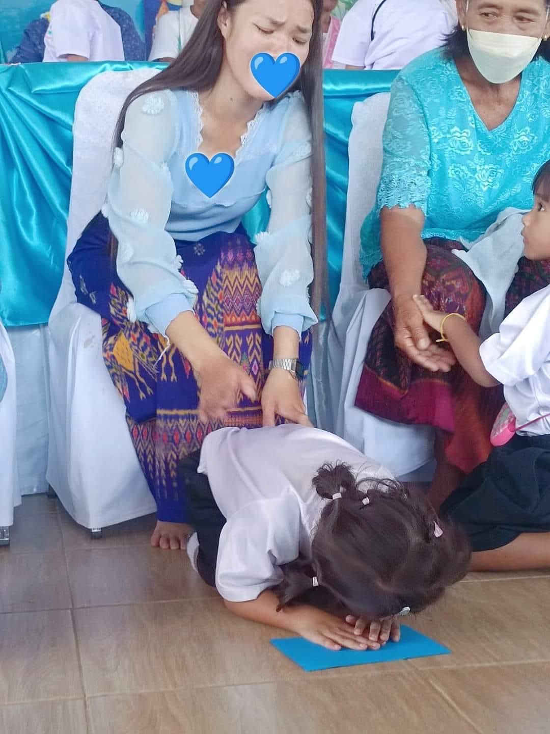 โดยคุณแม่เล่าว่า เมื่อวันศุกร์ที่ผ่านมา โรงเรียนได้มีการจัดกิจกรรมวันแม่ให้ผู้ปกครองเด็กไปร่วมด้วย ช่วงนั้นเป็นช่วงที่ครูให้แม่ขึ้นบนเวที นั่งเก้าอี้หันออกมาทางผู้คน และให้เด็กนั่งคุกเข่าเรียงกันต่อหน้าแม่ เพื่อจะทำการกราบ โดยเด็กแต่ละคน ได้วาดภาพมามอบให้แม่ด้วย