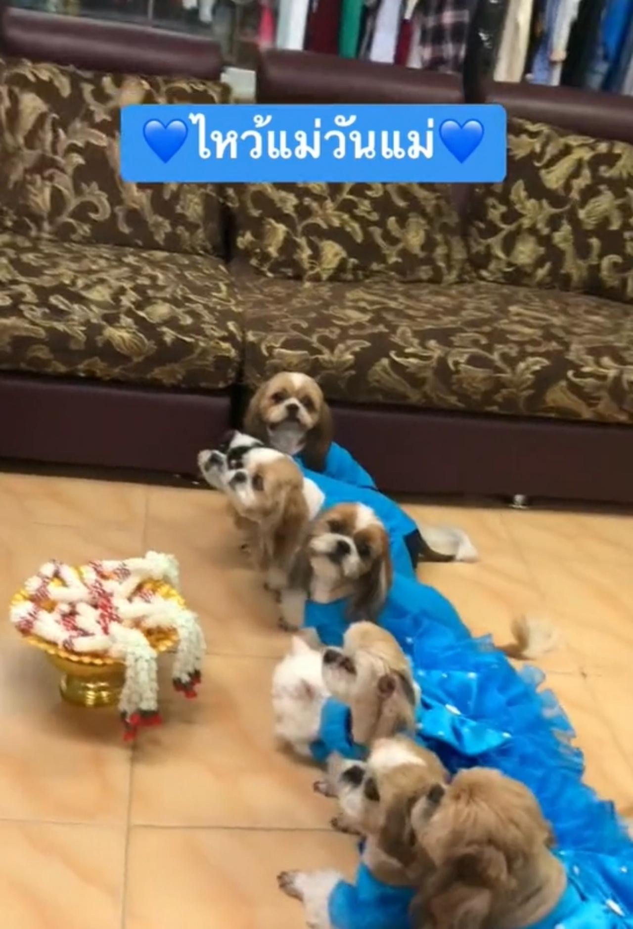 รักคุณแม่สุดหัวใจ คลิปไวรัลแสนน่ารัก แก๊งสัตว์เลี้ยงสี่ขา สวมชุดกระโปรง และเสื้อสีฟ้า นำพวงมาลัยมากราบเจ้าของ ทำโซเชียลน้ำตาซึม บอกสัตว์กับคนก็มีความรู้สึกไม่ต่างกัน