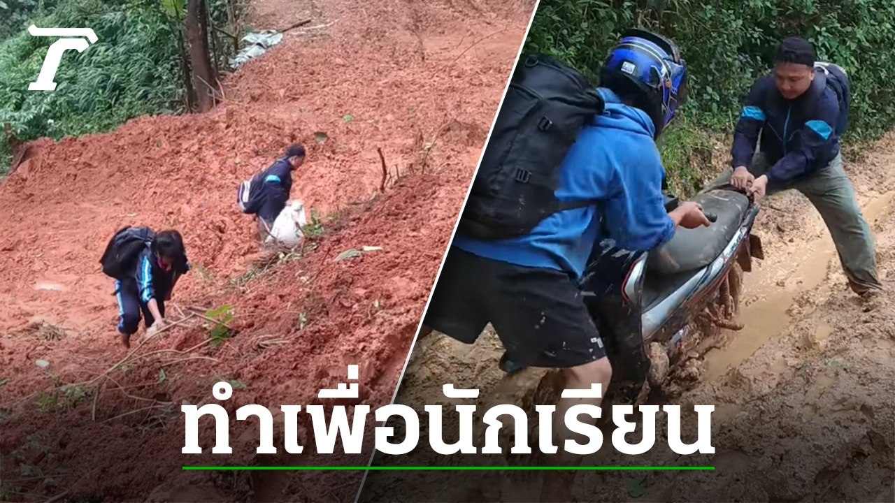 ซึ่งระยะทางนั้น เต็มไปด้วยความยากลำบาก เนื่องจากเป็นดินแดงที่ชื้นแฉะจากฝนตกหนัก แถมยังต้องถอดรองเท้าเดินขึ้นไปบนเนินเขา พร้อมระบุข้อความว่า ขี่รถ 4 ชั่วโมง เดินเท้า 4 ชั่วโมง คิดถึงบ้านเหรอ ครูไปส่งเอง ระบบดูแลช่วยเหลือนักเรียน