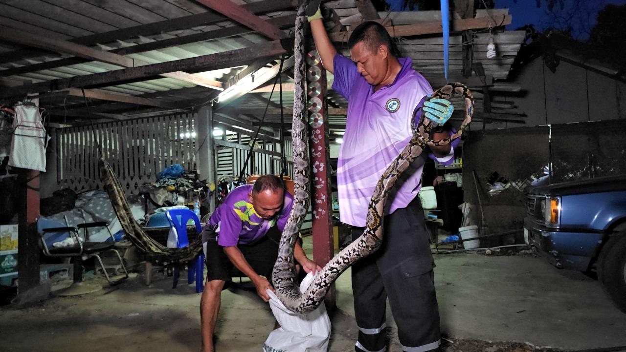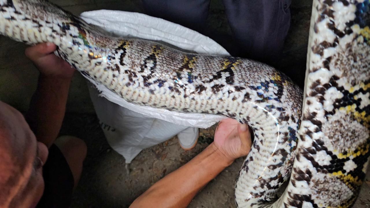 ทหารเรือ แจ้งกู้ภัยจับงูเหลือมตัวใหญ่ยาว 4 เมตร บุกเขมือบไก่พ่อพันธุ์และแม่พันธุ์ชั้นดี จนเกลี้ยงเล้า เผยราคา 2 ตัวหลายพันบาท