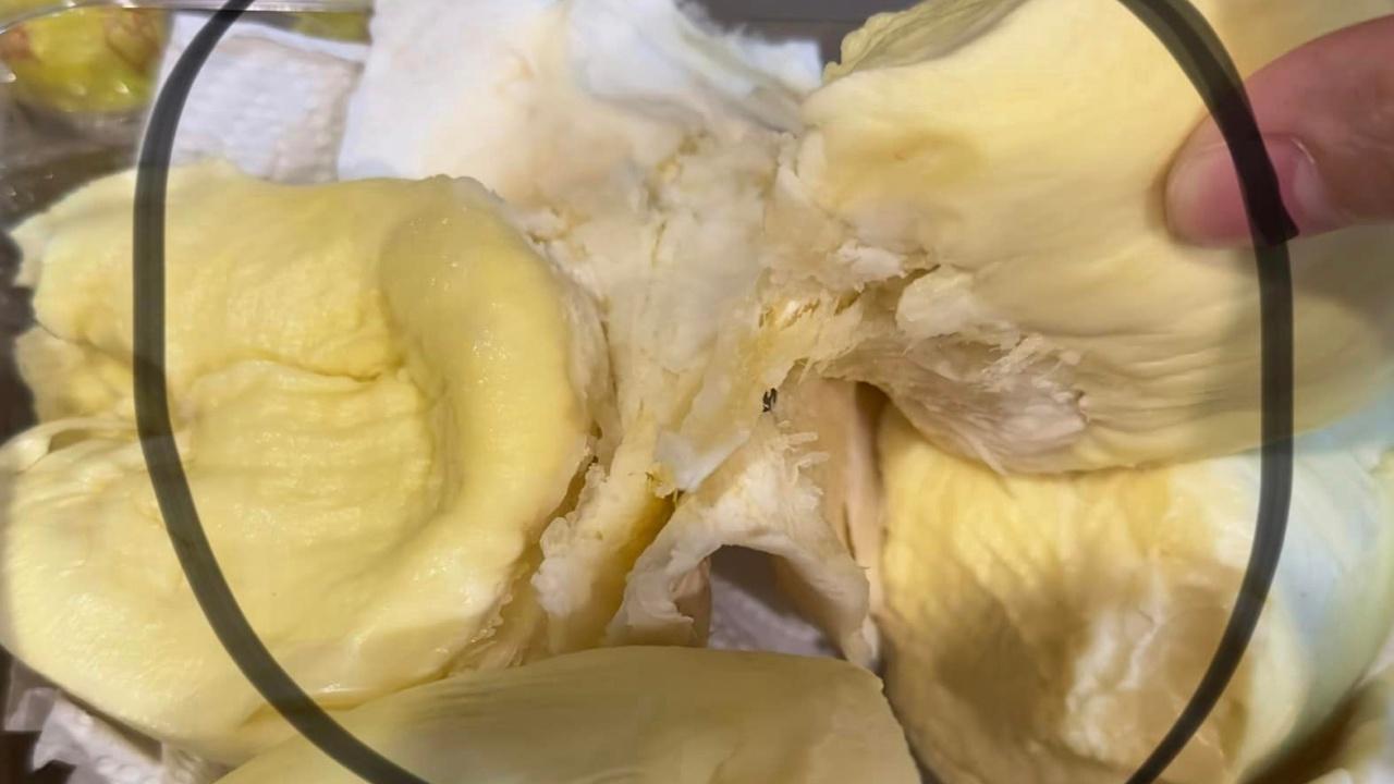 เราสั่งทุเรียนเนื้อกรอบแข็งไก่ฉีก ซึ่งปกติทานทุเรียนแข็ง ห่าม ไม่นิ่ม เพราะไม่ชอบกลิ่นที่แรง สิ่งที่เห็นตอนแรกทุเรียนในภาพโดยรวมถือว่าโอเค แต่พอแกะดูเนื้อข้างในแล้วไม่ใช่แบบที่เห็นเลย ซึ่งเราได้สินค้าไม่ตรงกับเนื้อที่เราสั่ง ถึงได้แจ้งเคลมไป ในส่วนของเรื่องการเคลมทุเรียนที่มีปัญหา